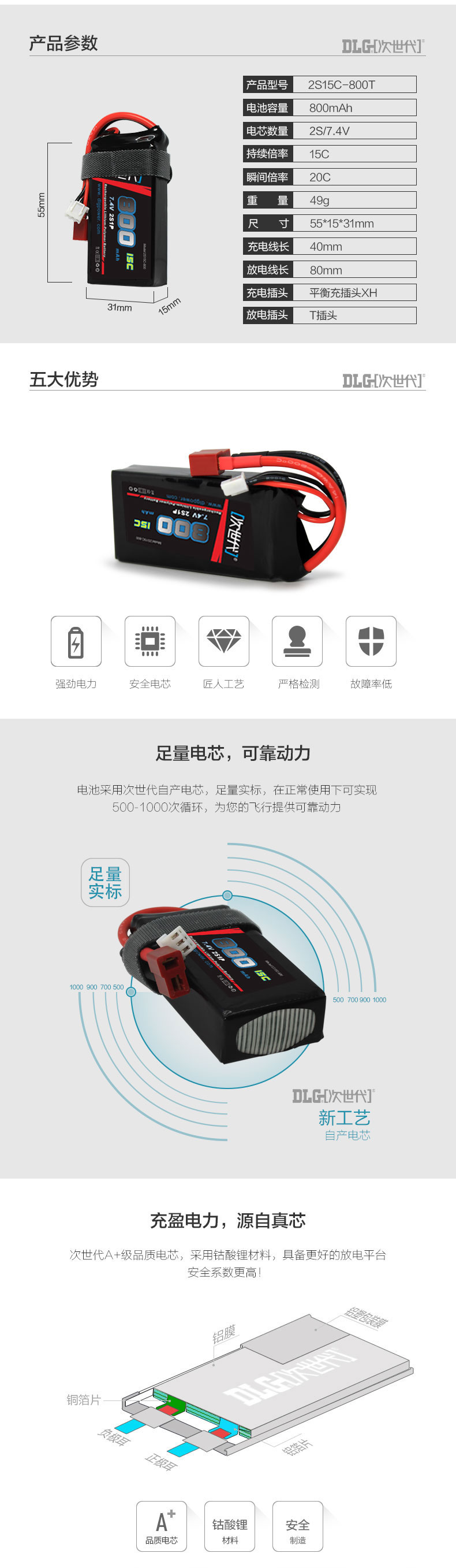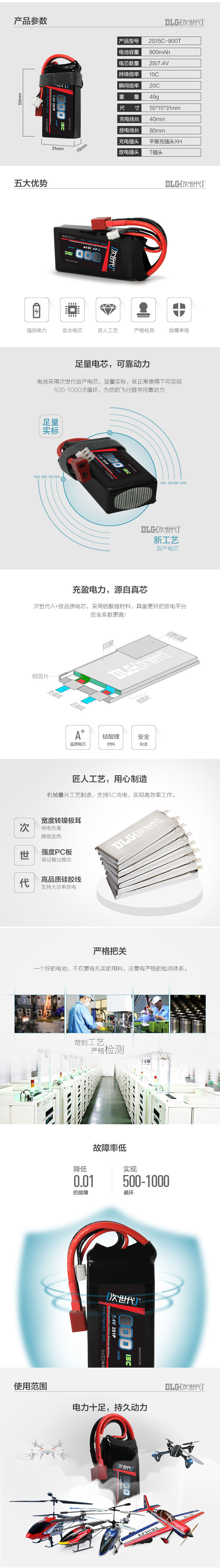 商品名称:次世代 2S聚合物电池7.4V 2S15C-800T