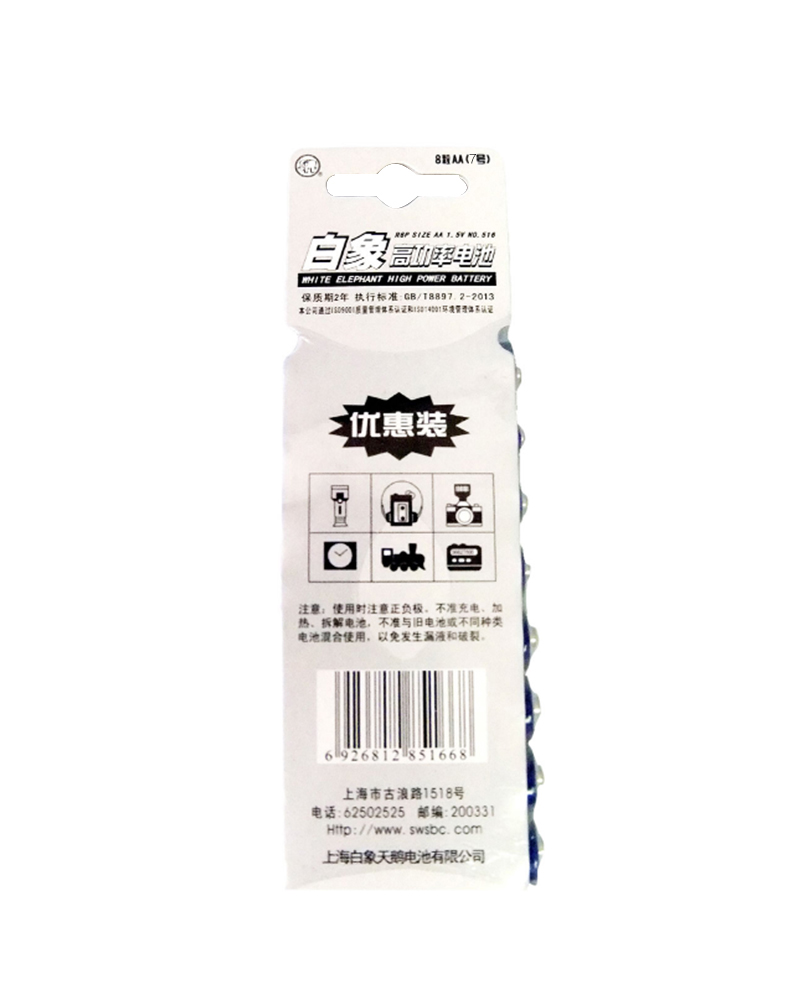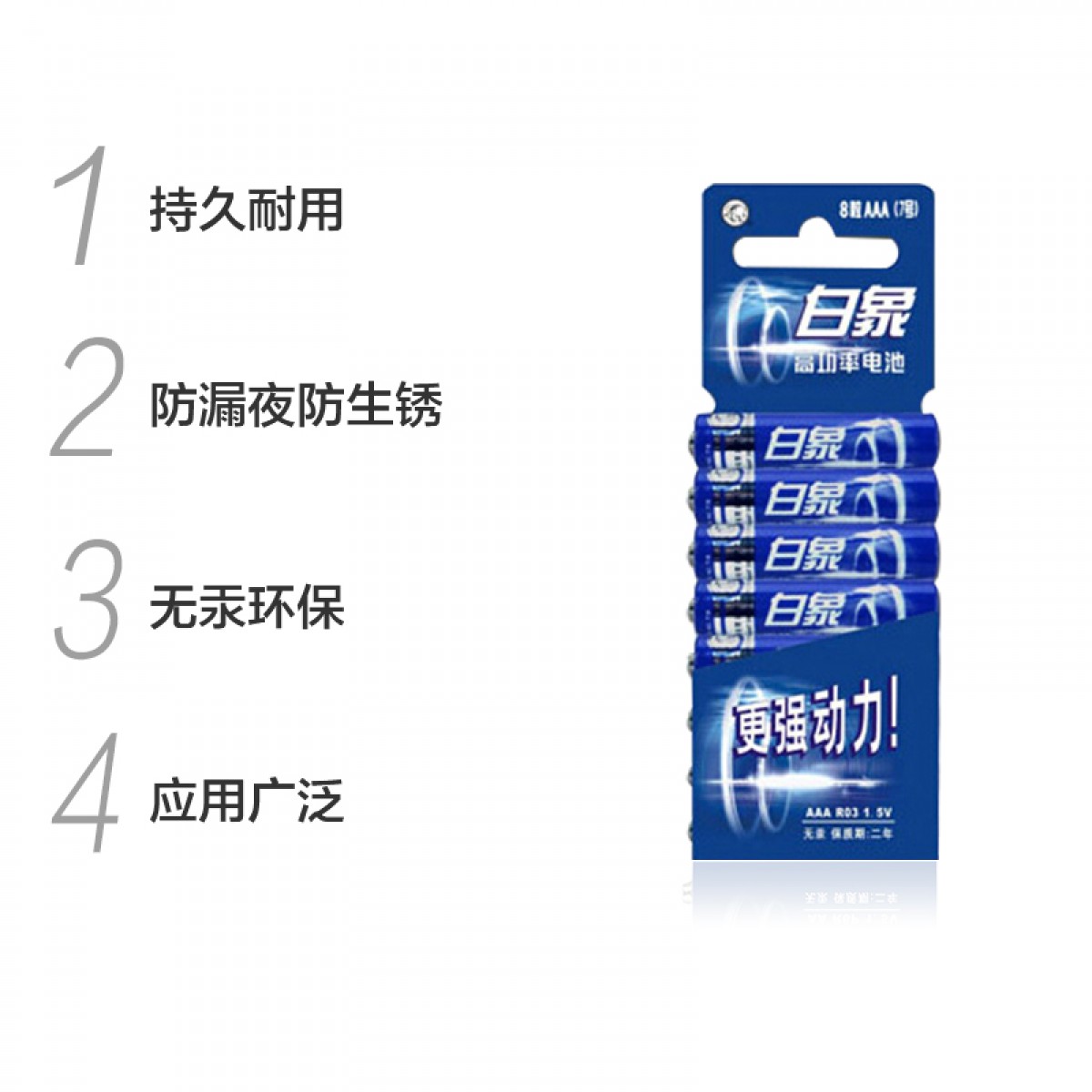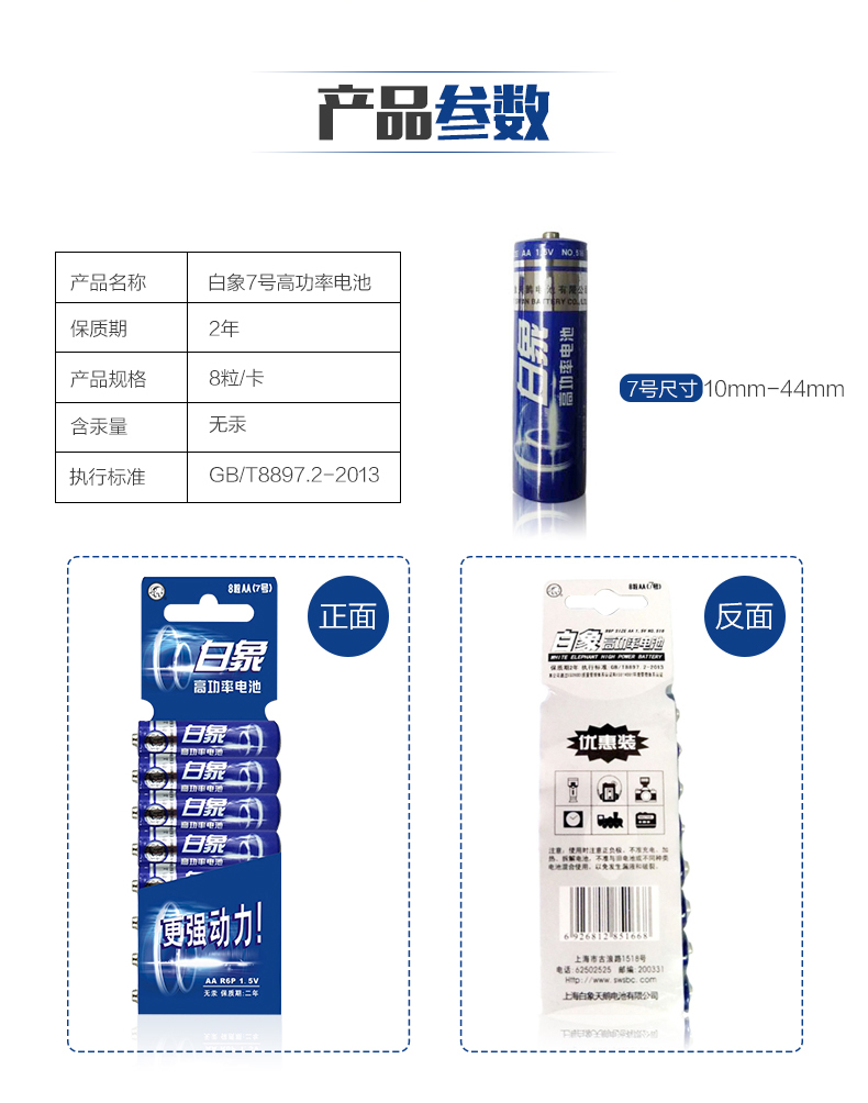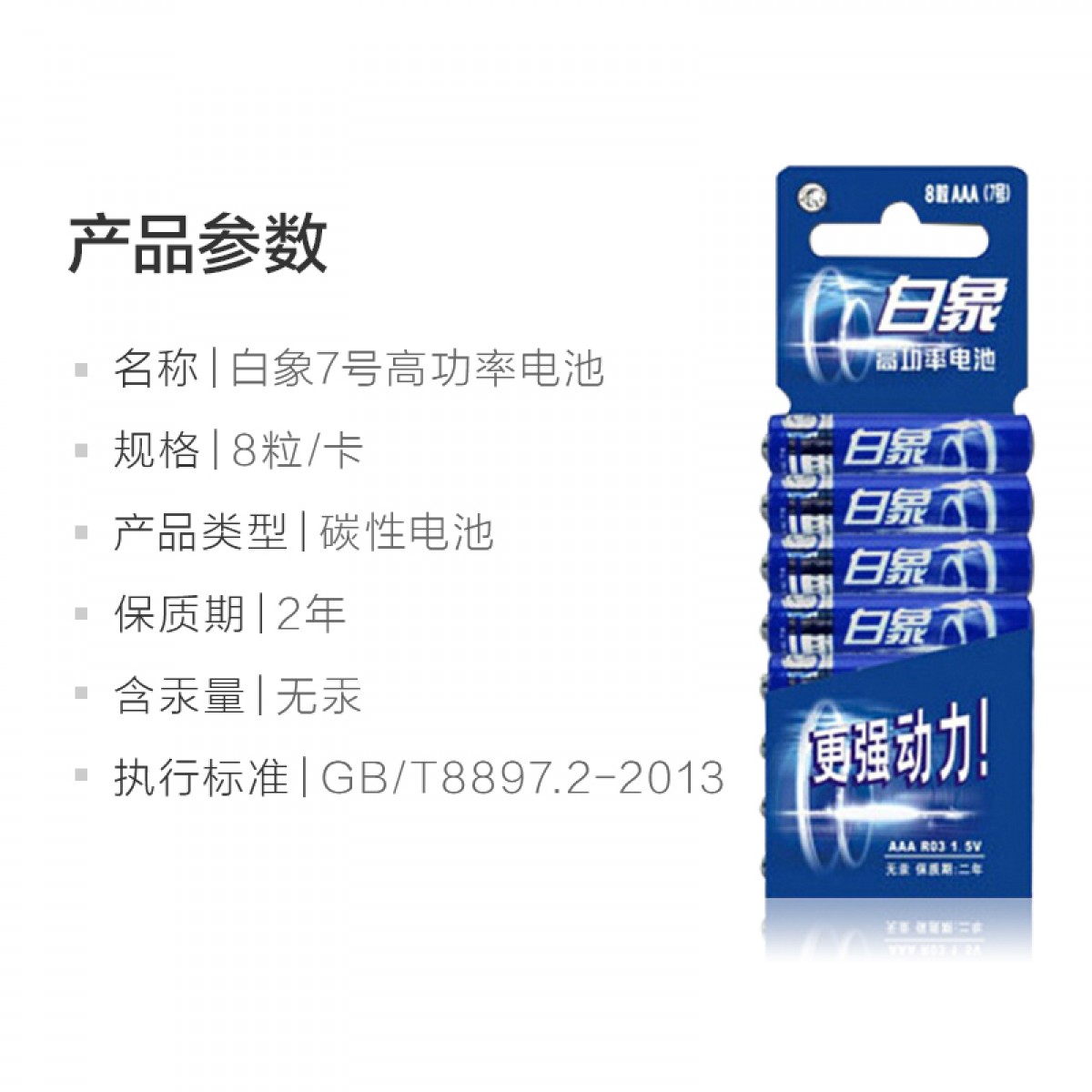 商品名称:白象 电池7号电池七号8粒碳性干电池 R03 NO.716