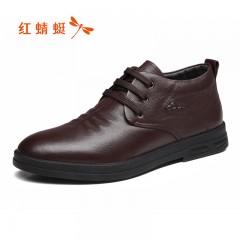 红蜻蜓 真皮男棉鞋冬季新品商务休闲棉鞋牛皮高帮保暖皮鞋