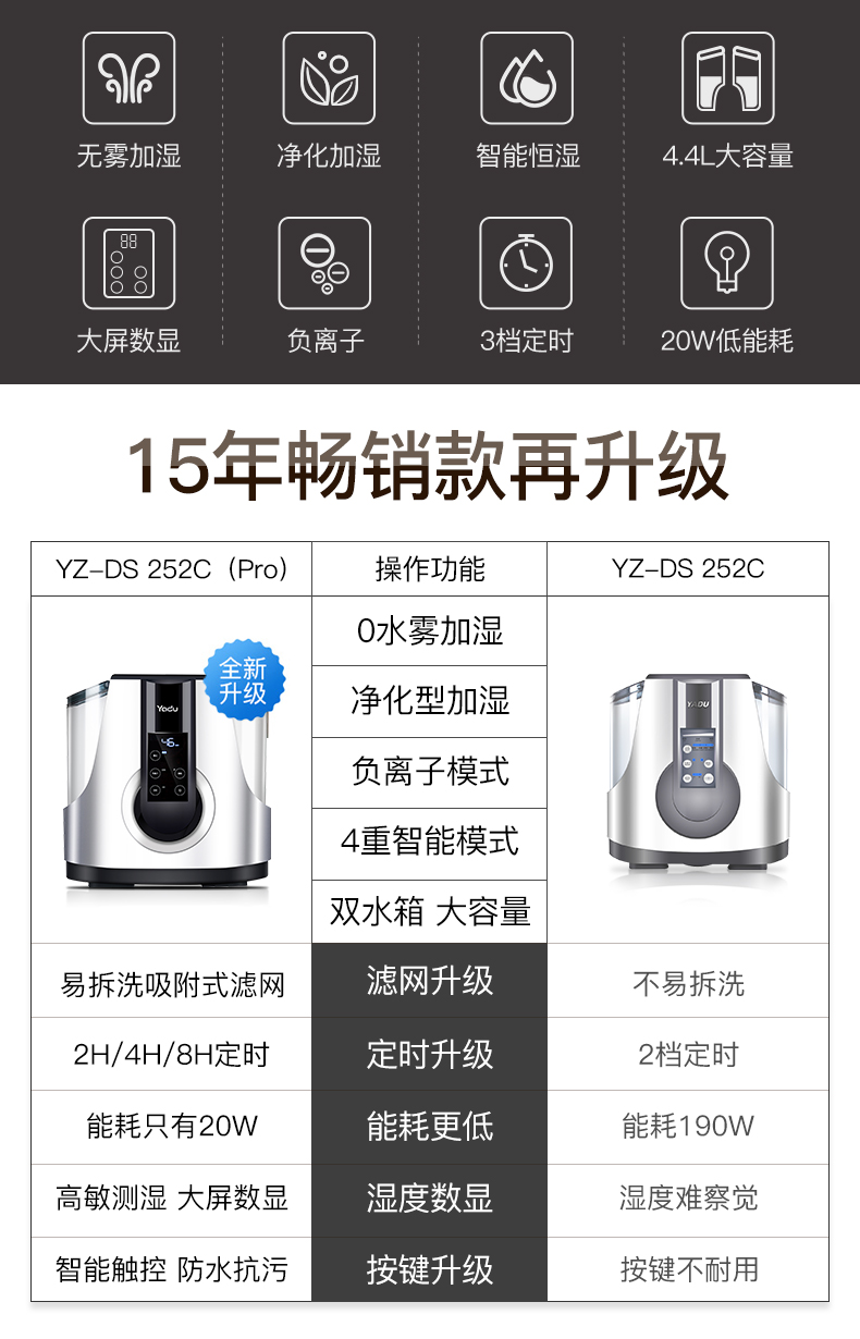 商品名称:亚都 无雾加湿器大容量纯净加湿 YZ-DS252C Pro