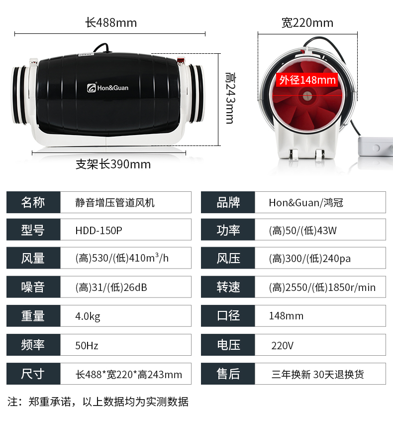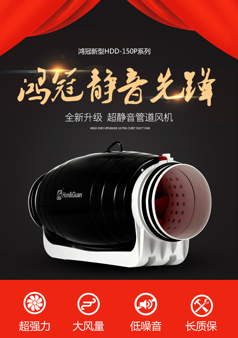 商品名称:鸿冠 静音管道风机强力抽风机排风机换气扇6寸 HDD-150P