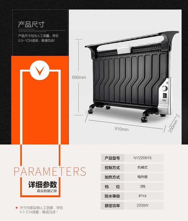 商品名称:澳柯玛 电热油汀薄板式家用取暖器/电暖器/电暖气 NY22D615