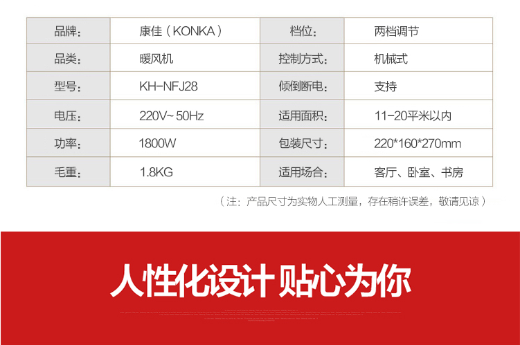 商品名称:康佳 取暖器家用电暖器台式暖风机 KH-NFJ28