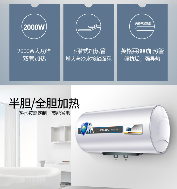 商品名称:康佳 储水式电热水器圆桶40L KA12
