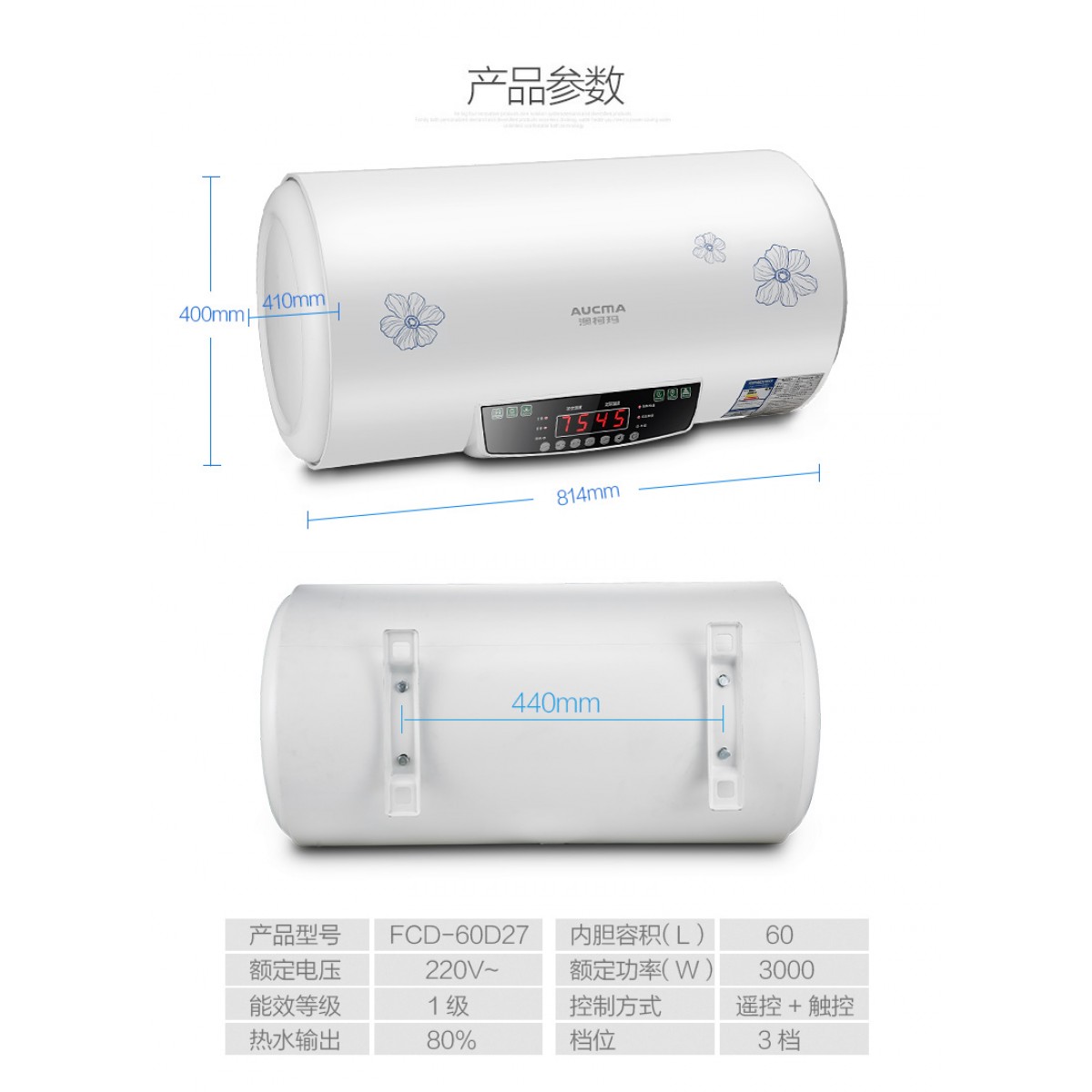 商品名称:澳柯玛 储水式家用60升电热水器 FCD-60D27