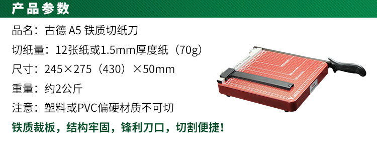 商品名称:古德 A5 铁质裁纸刀 裁纸器 切纸刀