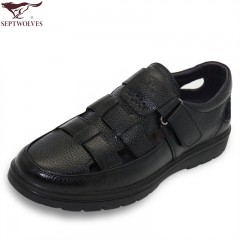 七匹狼 皮凉鞋男士头层牛皮时尚休闲男鞋透气黑色夏季真皮鞋子