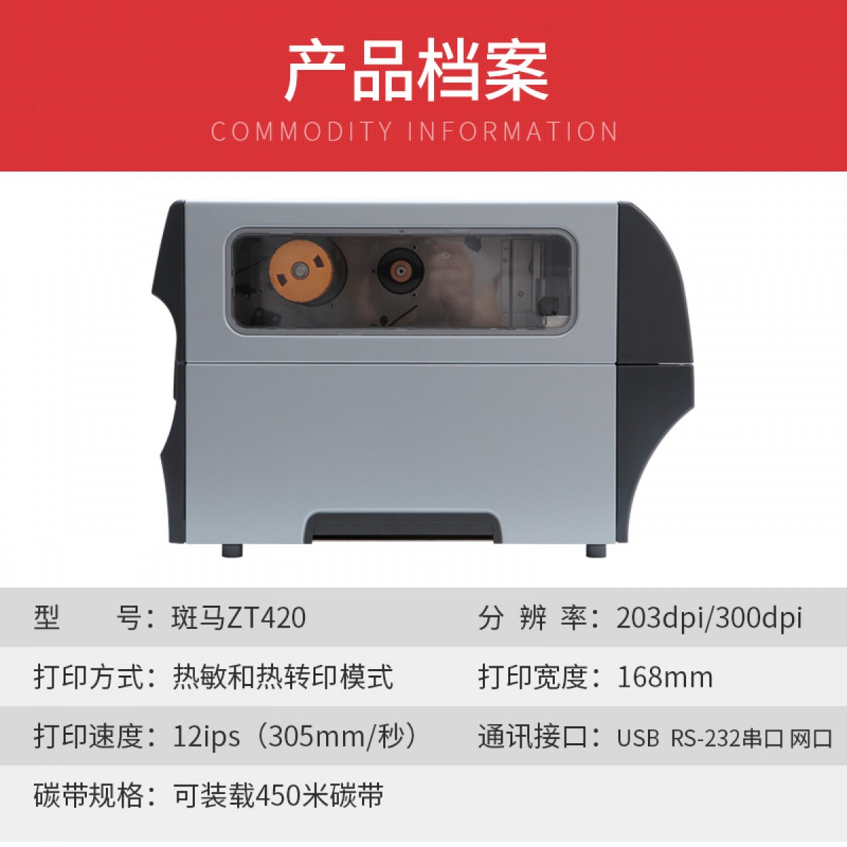 商品名称:斑马/Zrbra 宽幅标签打印机工业标签机 ZT420