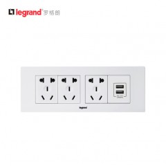 罗格朗 尚超风118型开关插座三位五孔+USB充电插座面板 15孔
