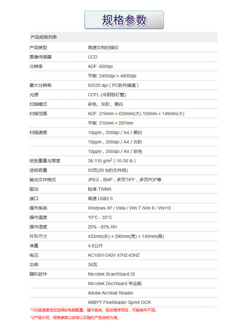 商品名称:中晶/Microtek 扫描仪 高清高速文档自动进纸扫描 1030