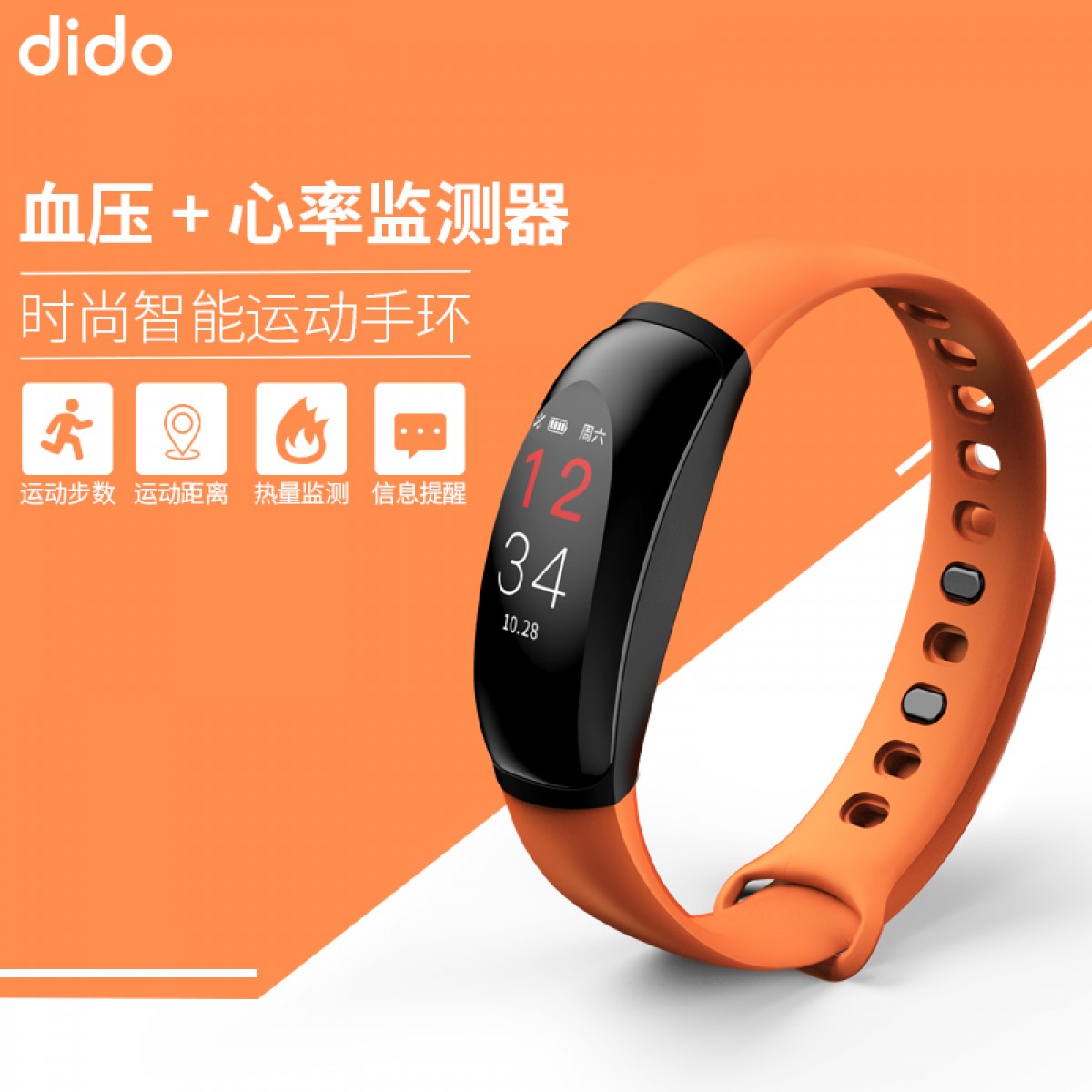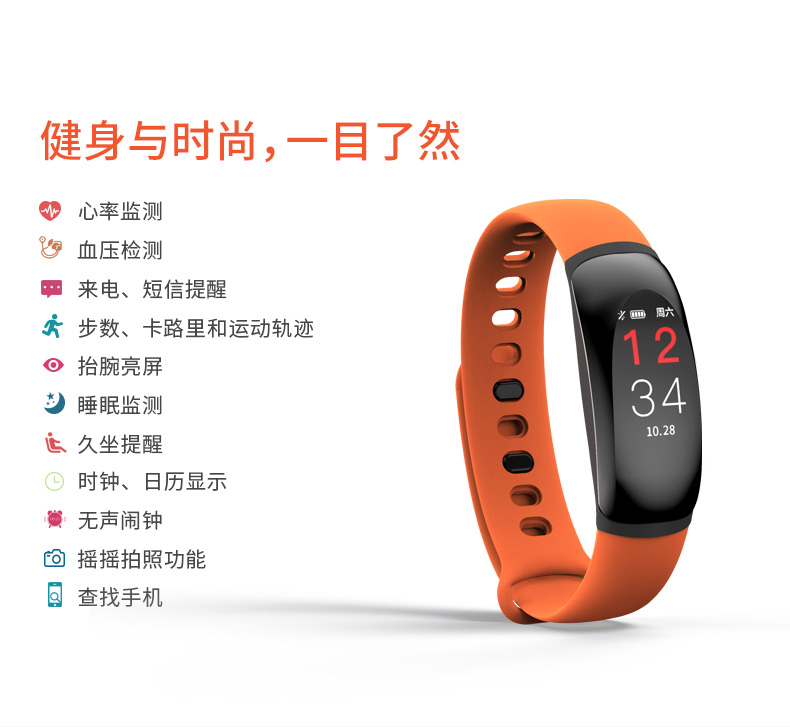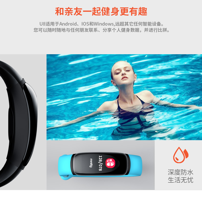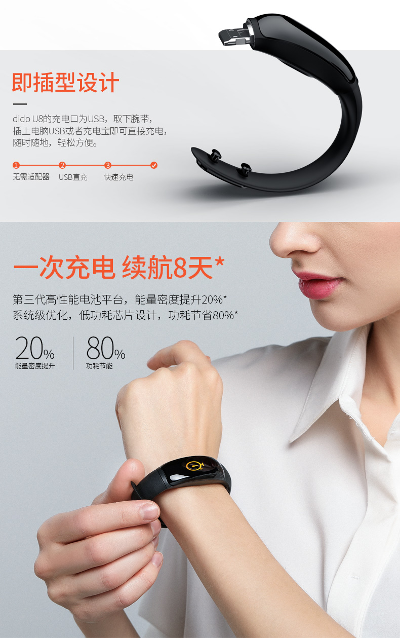 商品名称:dido 智能运动手环男测心率血压手表 U8
