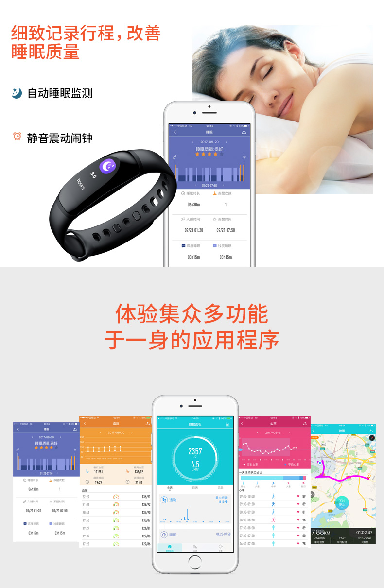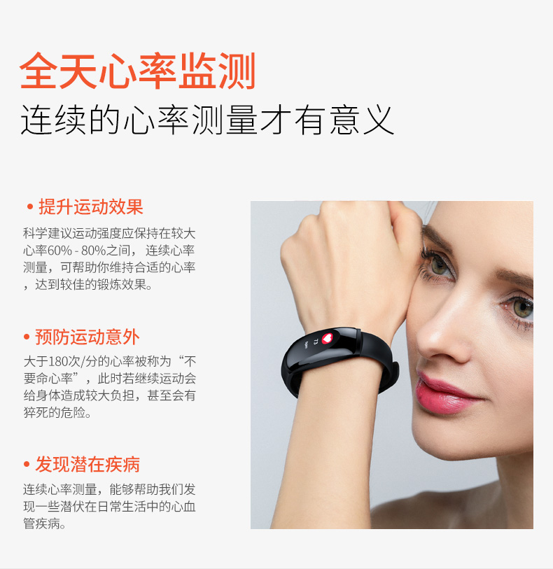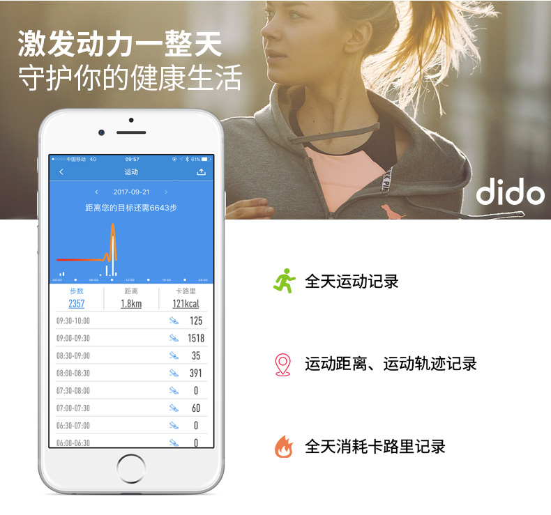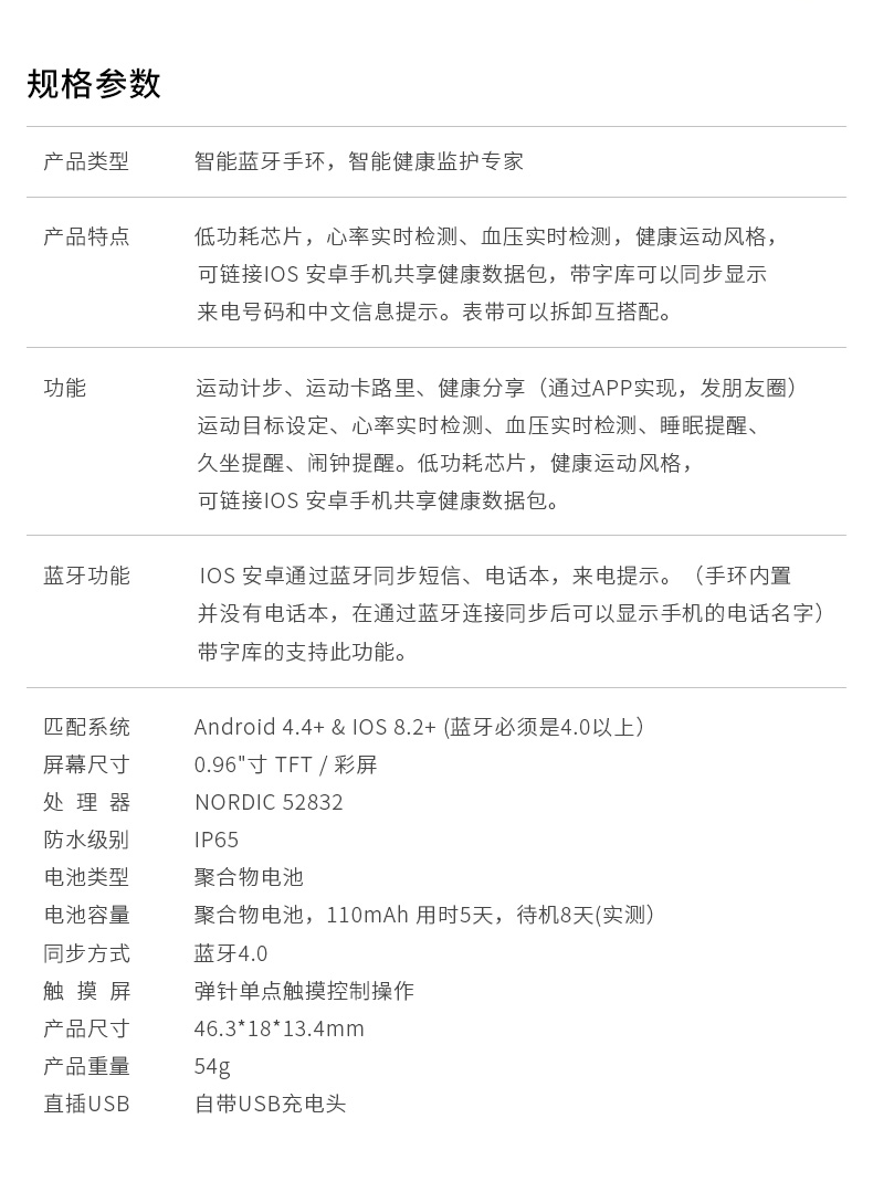 商品名称:dido 智能运动手环男测心率血压手表 U8