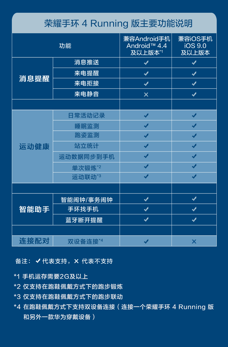荣耀/Honor 版运动智能计步防水跑姿监测 手环4Running