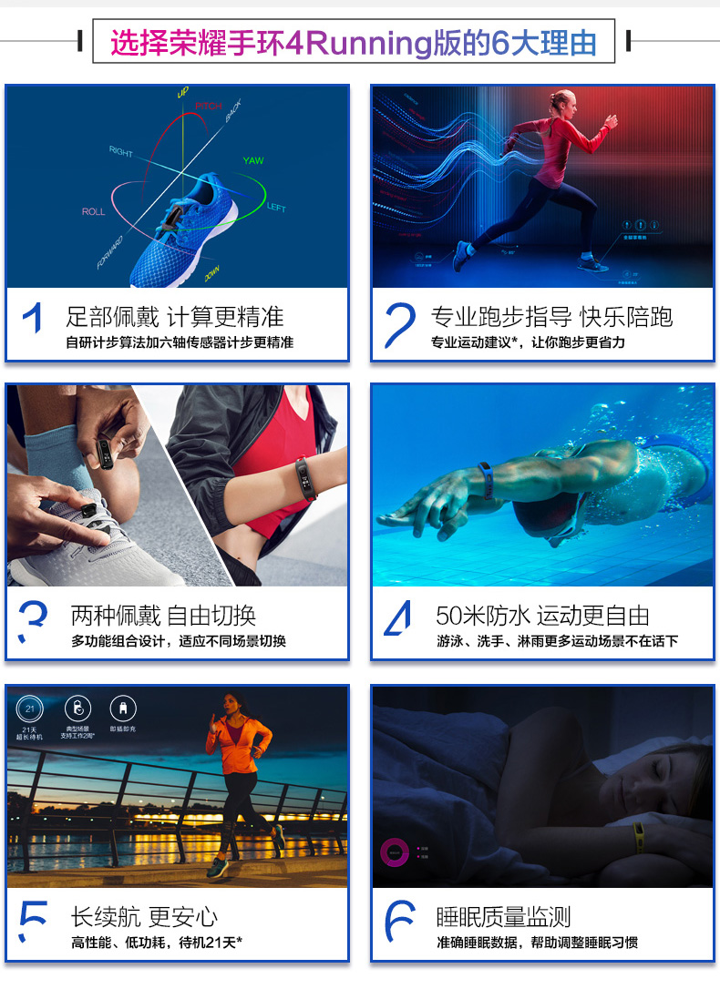 商品名称:荣耀/Honor 版运动智能计步防水跑姿监测 手环4Running