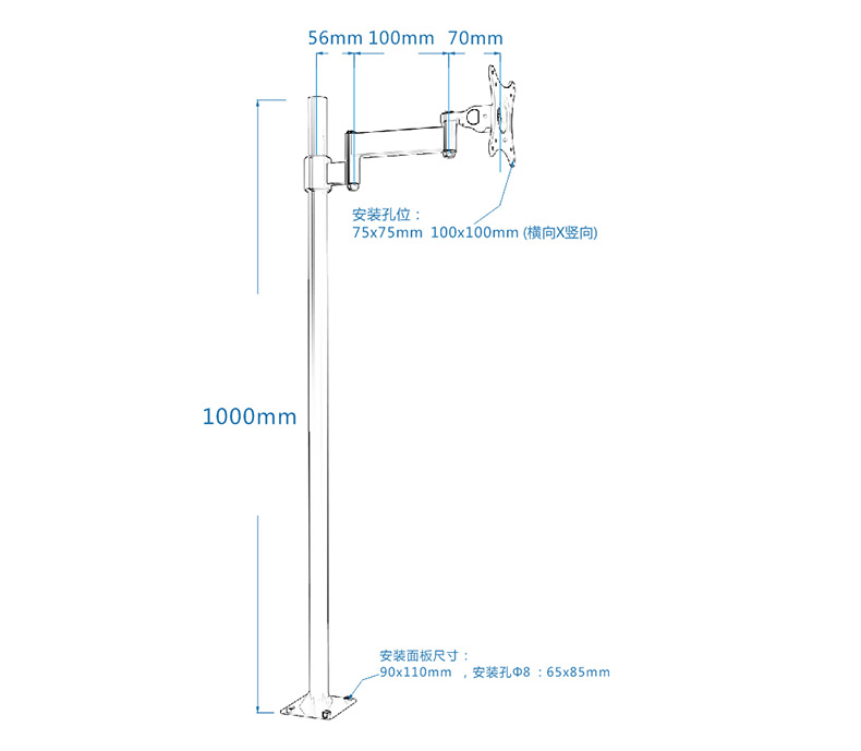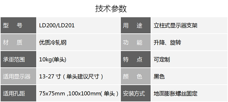 商品名称:DVHZ 显示器通用挂架落地式 足浴沙发 微型投影支架可定制 LD200