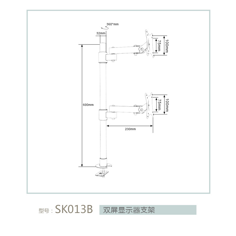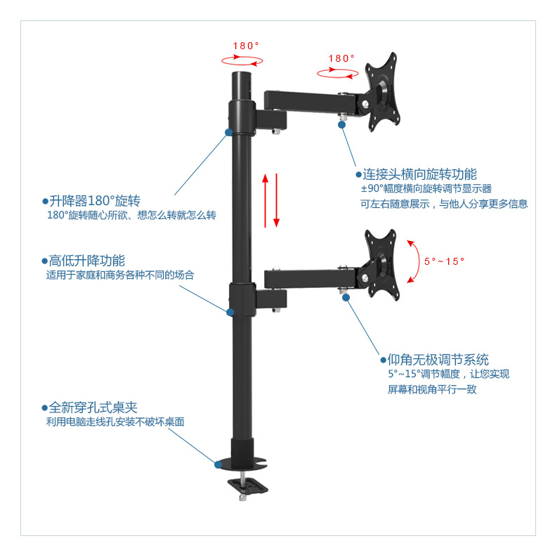 | 名称 | 穿孔上下双屏显示器支架 | 颜色 | 黑色 |