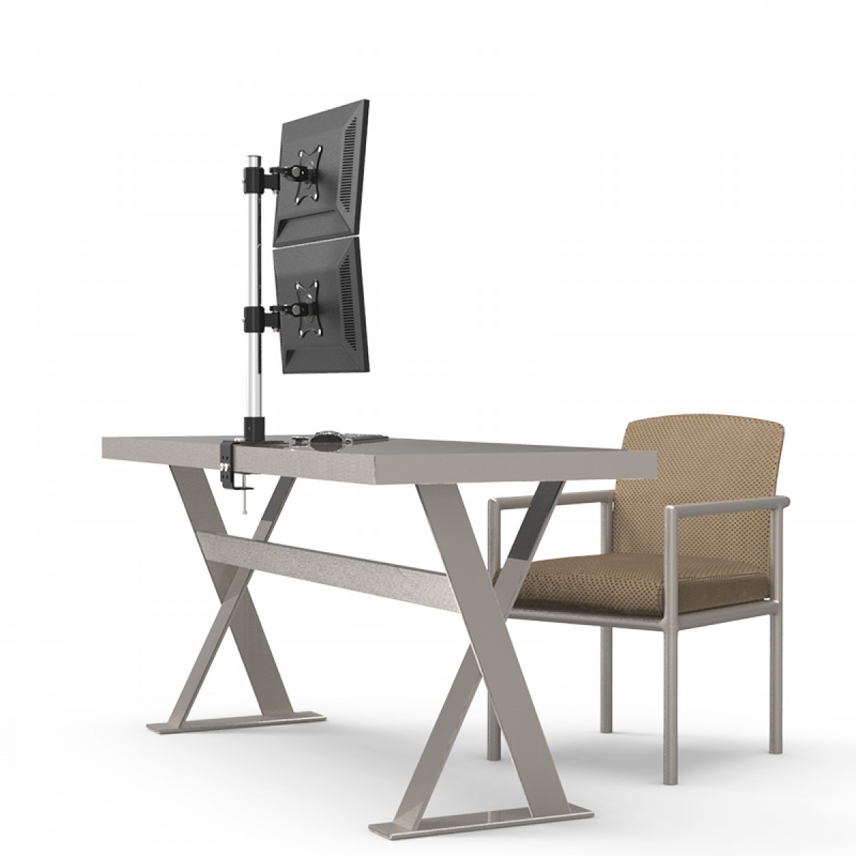 桌夹上下双屏显示器支架不锈钢款