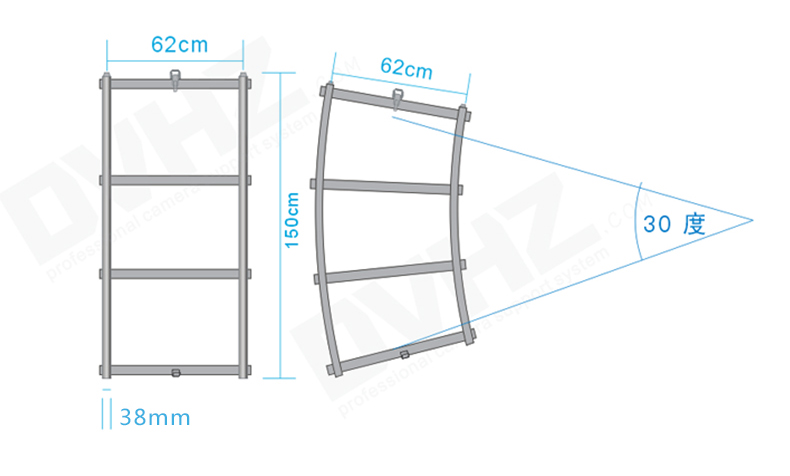 φ38.2mm,不锈钢工业管(一线大厂才有管,小厂不具备)精制而成,轻巧、牢固、易拆装,可作同期声移动轨使用。