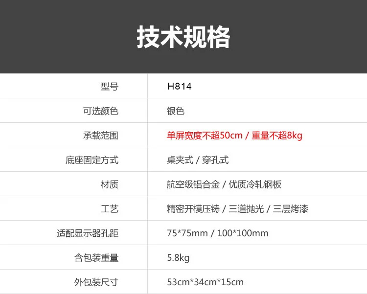 商品名称:DVHZ 多屏幕234显示器支架 液晶电视机挂架伸缩万向 H814