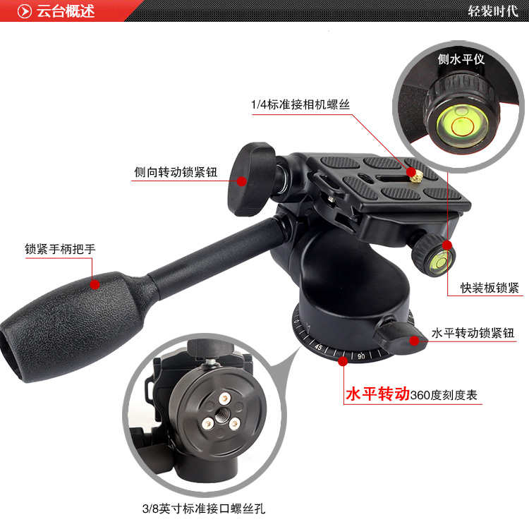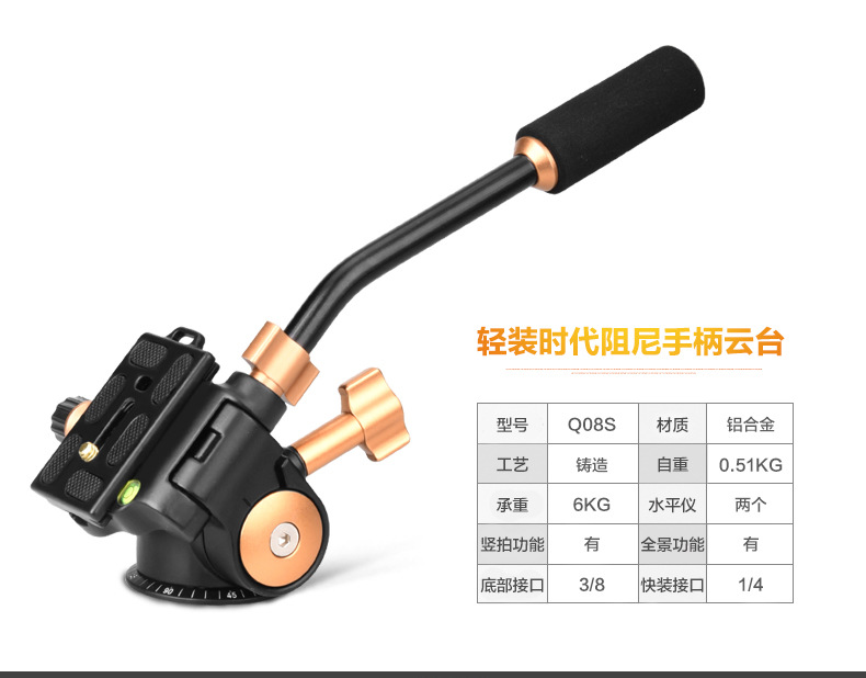 轻装时代 单反相机三脚架全景阻尼手柄摄像滑轨摄影液压云台 Q-08