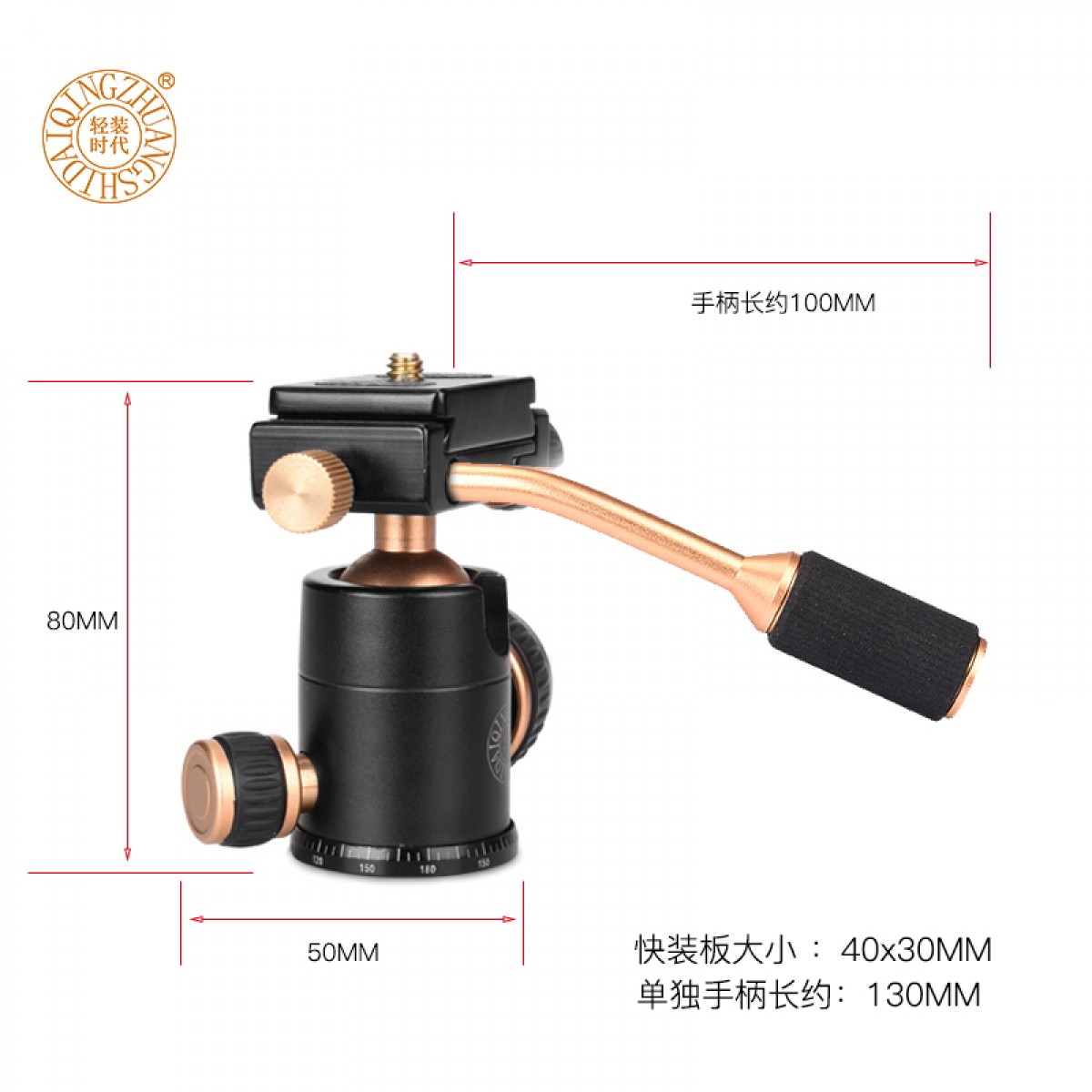 轻装时代 单反相机三脚架阻尼手柄万向摄影摄像球体云台