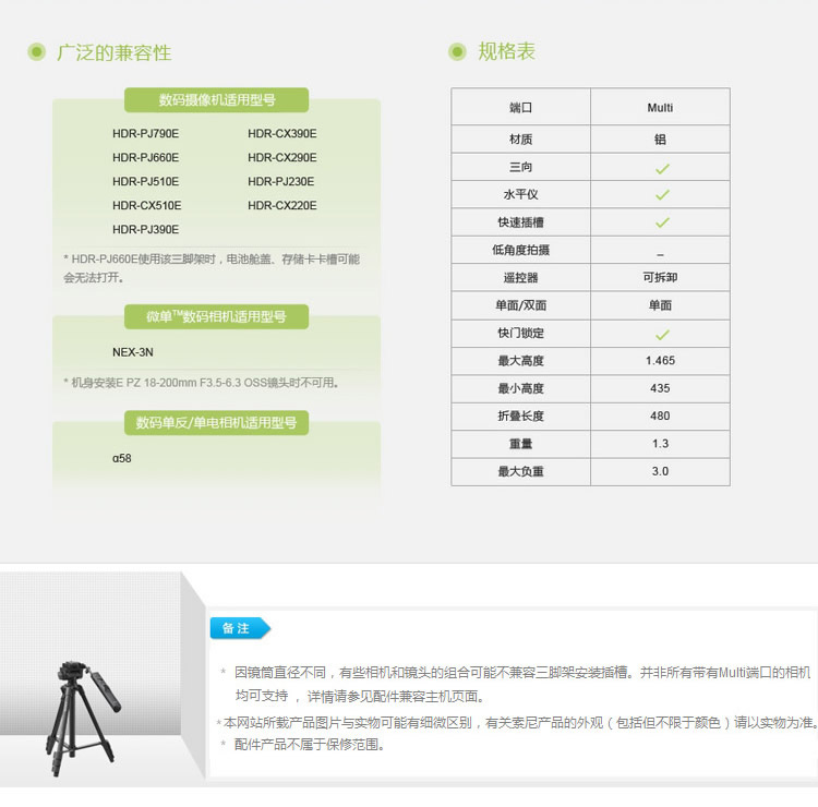| HDR-PJ660E* | 当使用该三脚架时,电池舱盖、存储卡卡槽可能会无法打开。 |