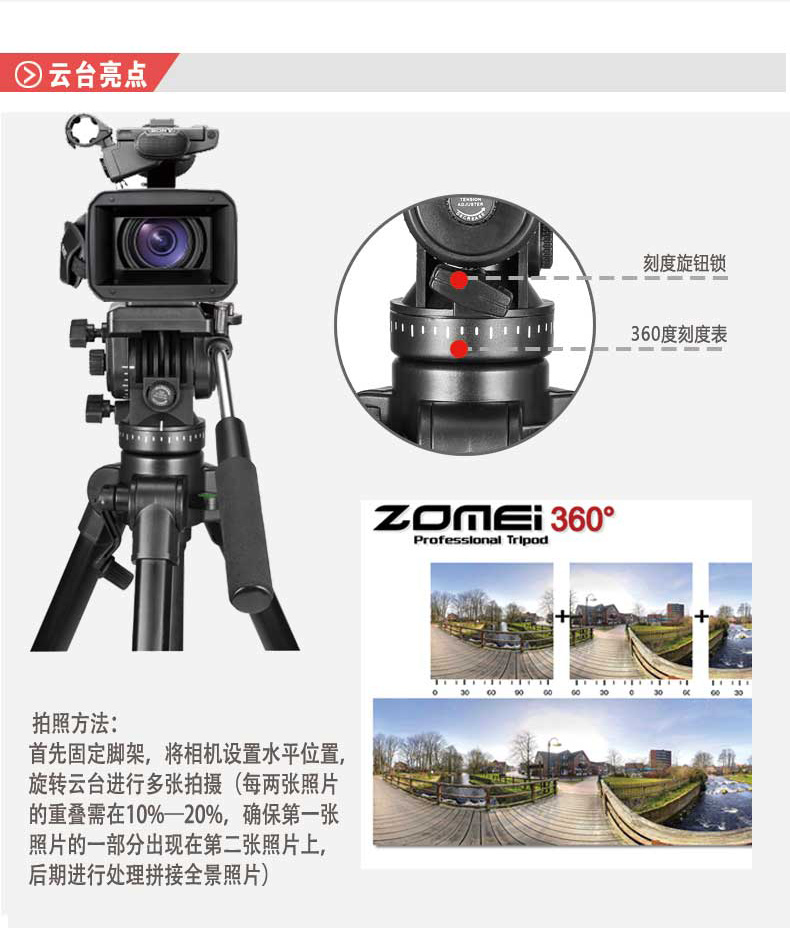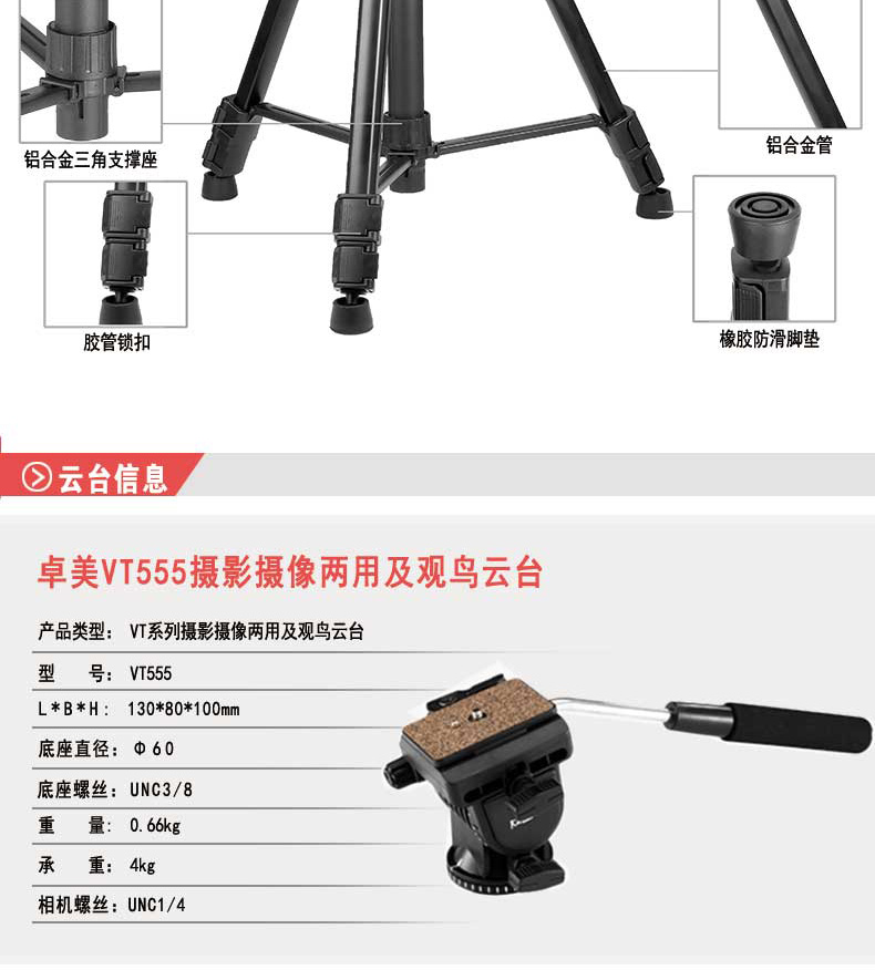 商品名称:Zomei/卓美 单反三脚架 相机便携专业三角架 摄影手机直播支架摄像 VT555