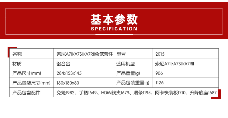 商品名称:斯莫格 摄像套件 for索尼A7R/S2单反微单相机兔笼配件 2015