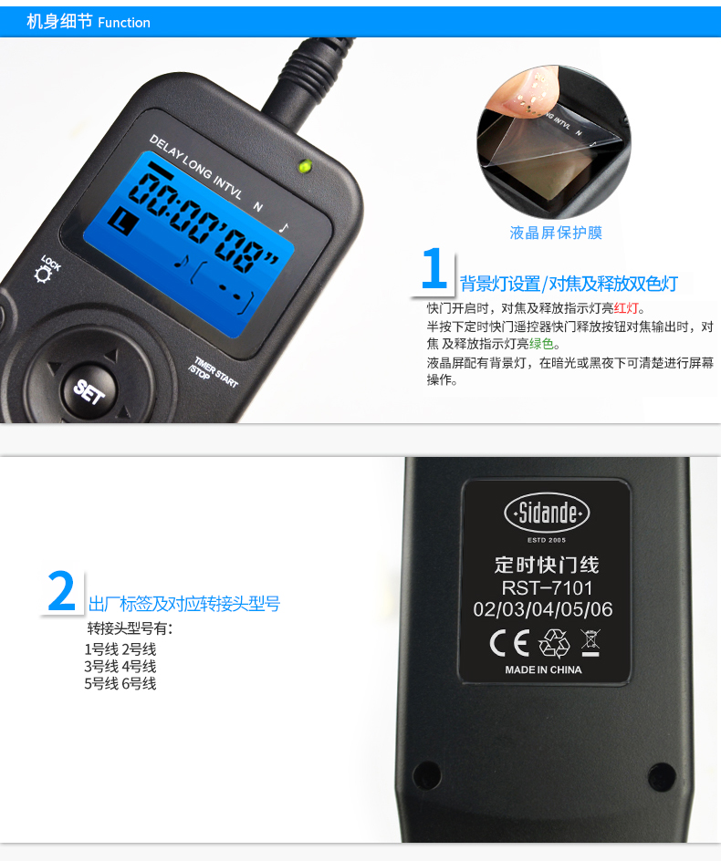 斯丹德 5D3/2单反6D相机70D700Dfor宾得定时佳能索尼延时60D快门线 RST-7101