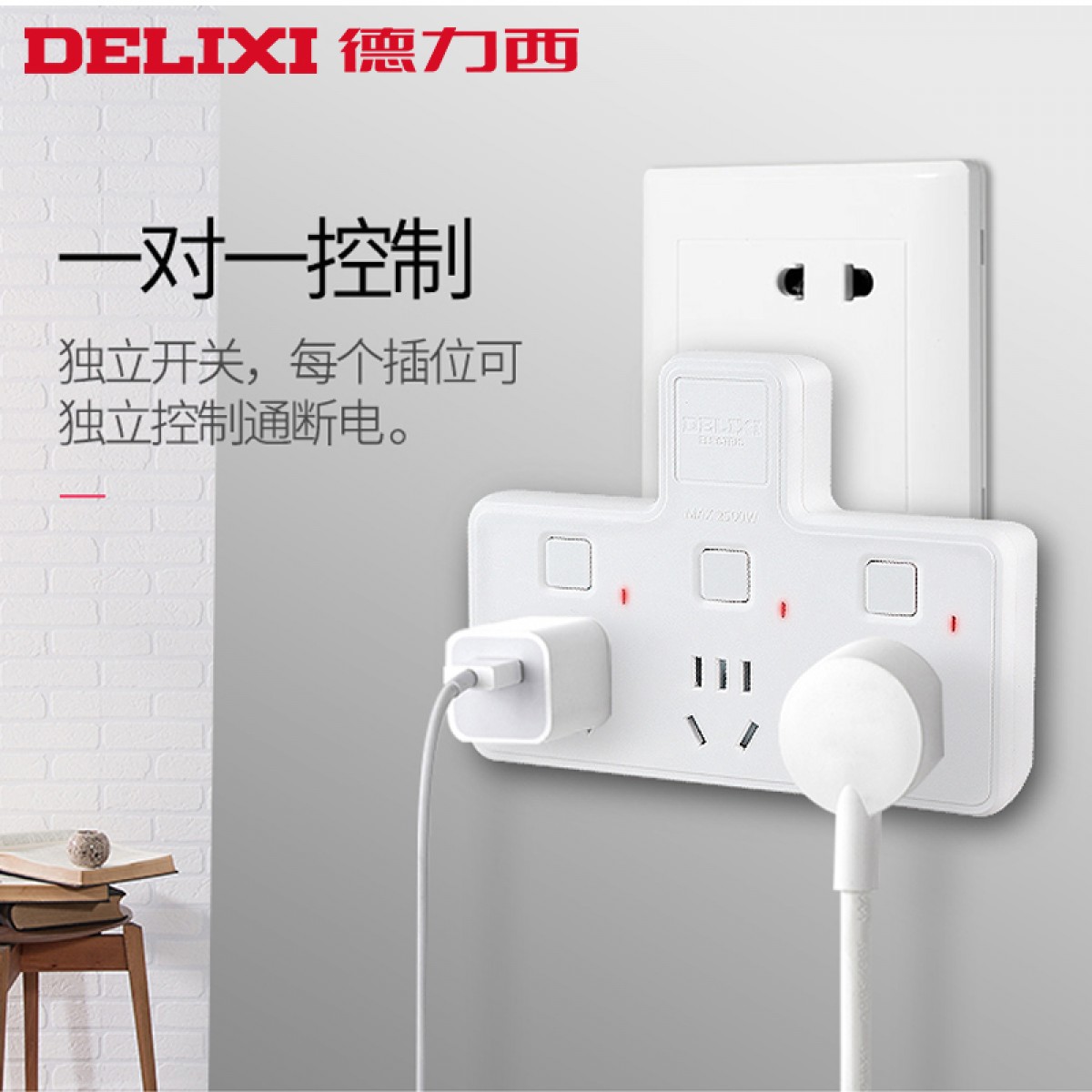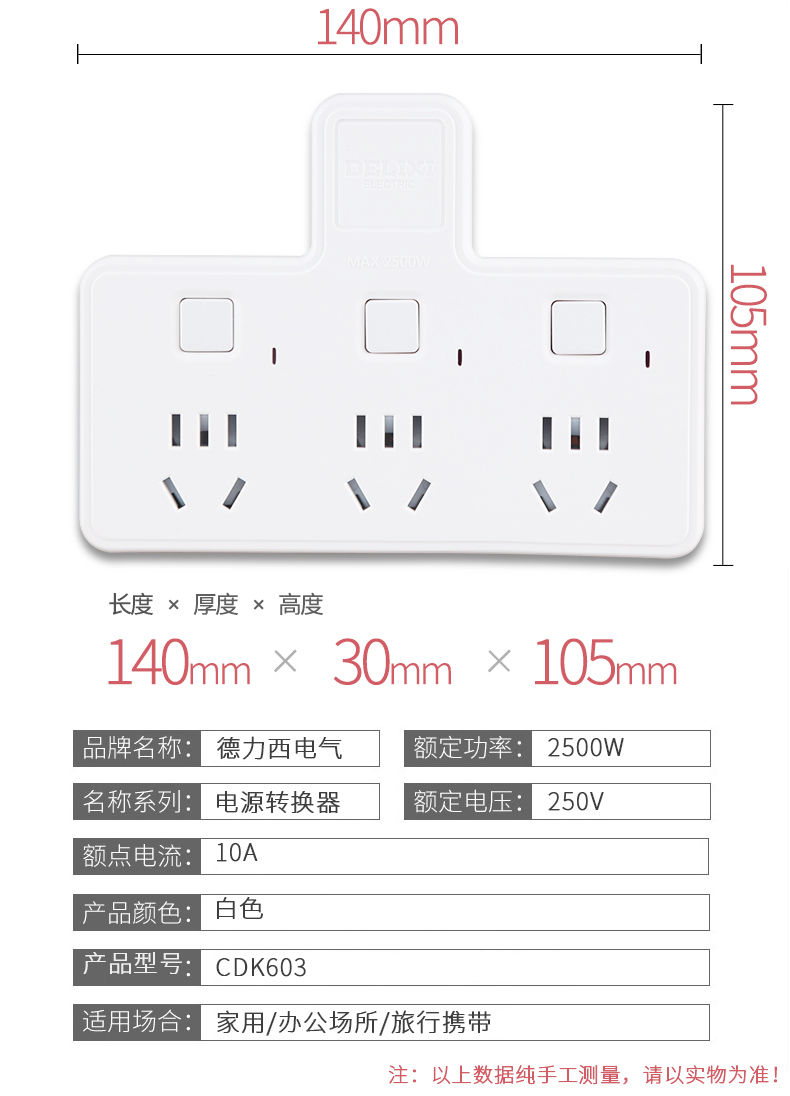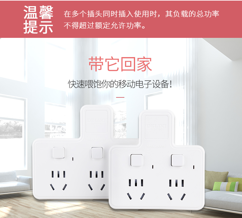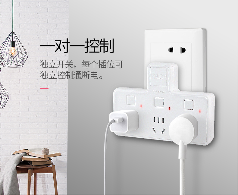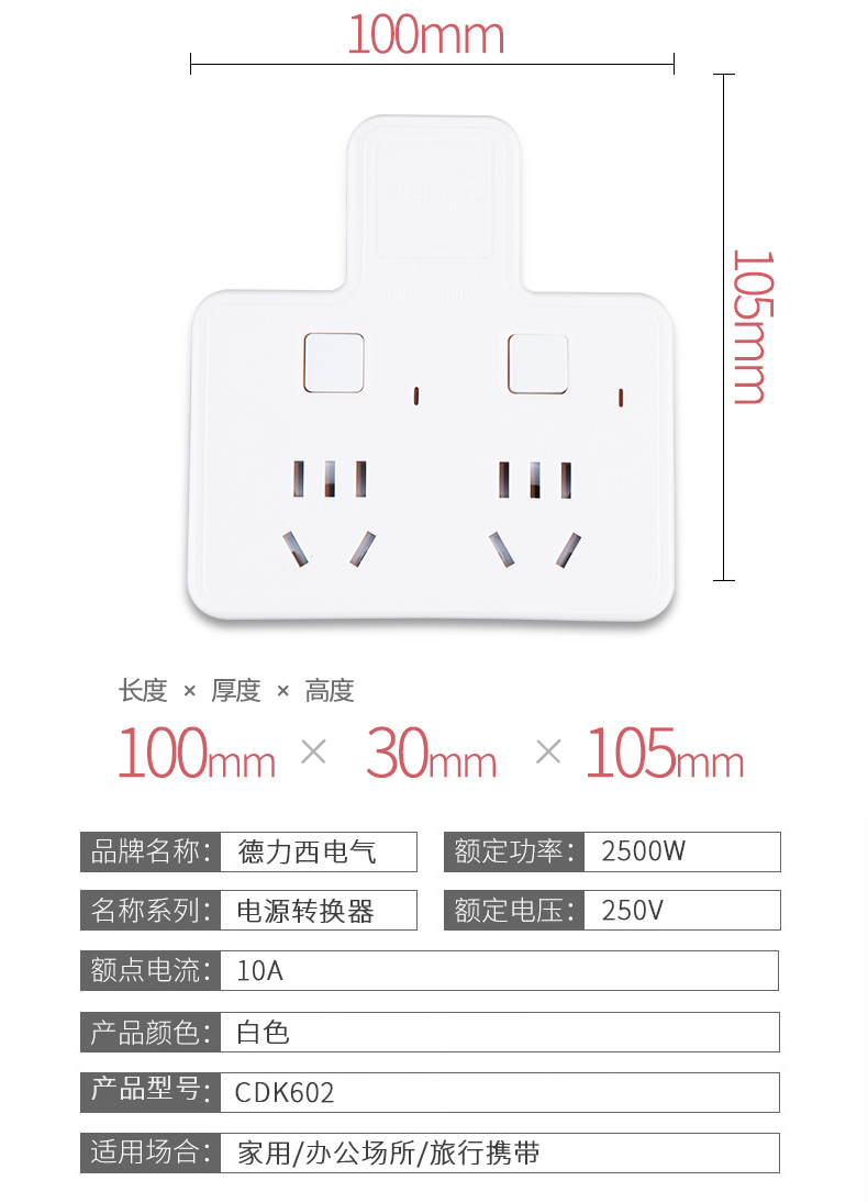 商品名称:德力西 插座转换器家用多功能插头一转多电源智能无线插座插排插板 CDK602