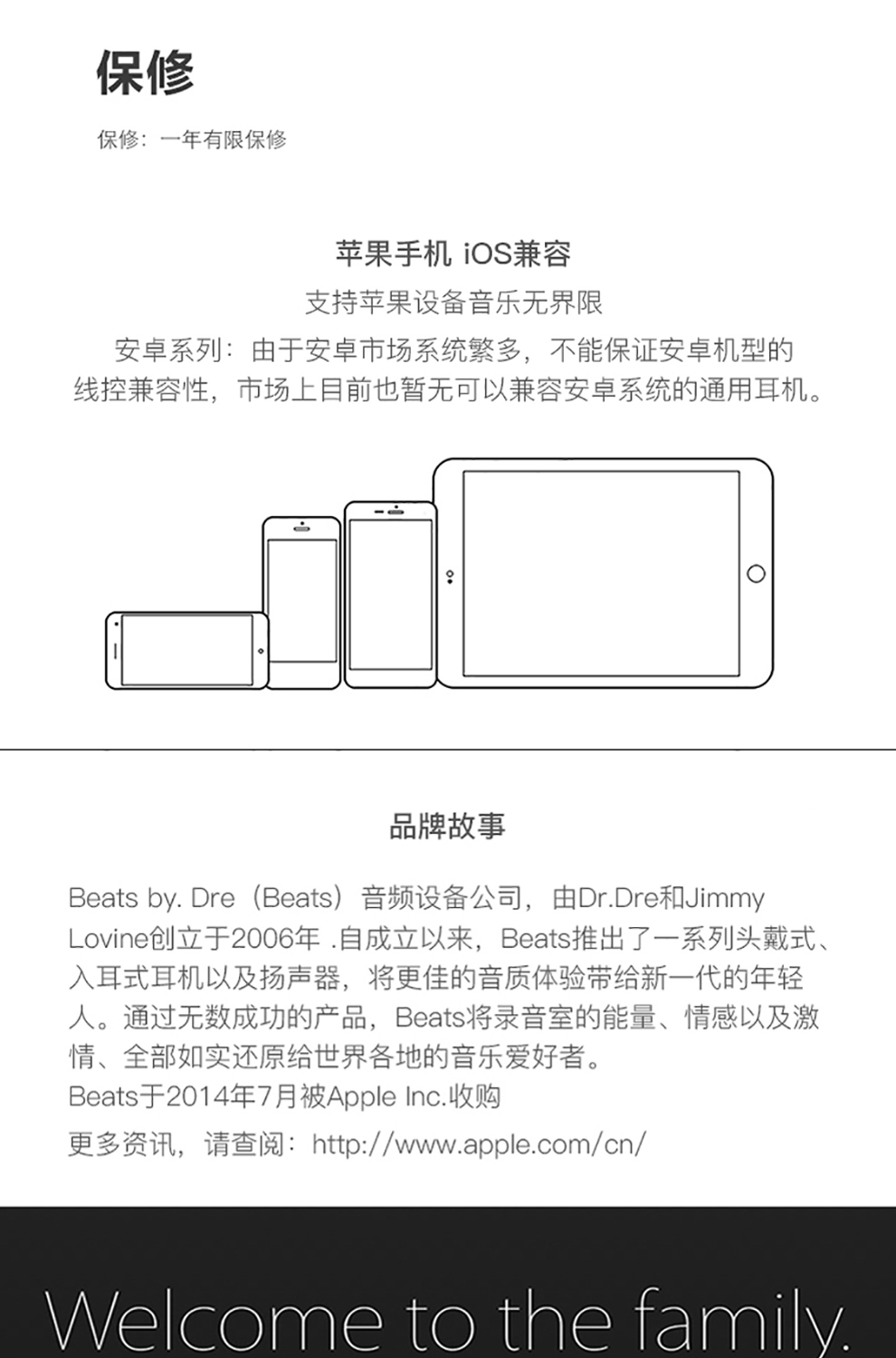 Beats by Dr. Dre (Beats)是音频设备公司,由Dr. Dre 和 Jimmy lovine创立于2006年。自成立以来,Beats 推出了一系列头戴式、入耳式耳机以及扬声器,将愉悦的音质体验带给新一代的年轻人。通过产品,Beats 将录音室里的能量、情感以及激情, 如实传递给世界各地的音乐爱好者。Beats于2014年7月被Apple Inc.收购。