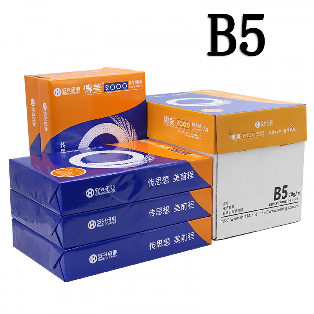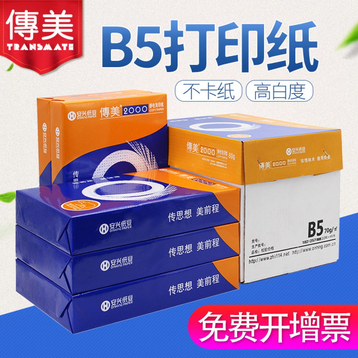 商品名称:安兴纸业 传美 182mm*257mm复印纸B5打印白纸70g单包500张b5整箱批发80g