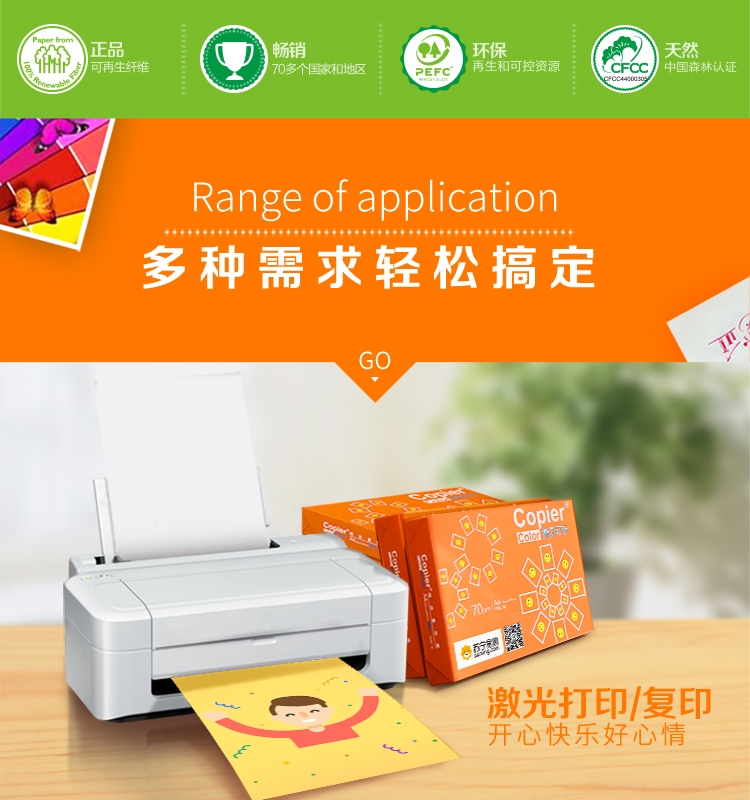 商品名称:亚太森博/Asia Symbol 纯木浆复印纸70g纸打印2500张5包办公学生整箱批发A4纸