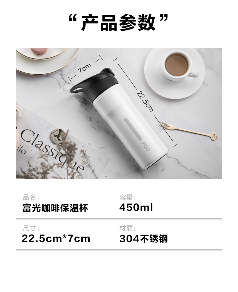 商品名称:富光 保温杯男便携水杯不锈钢女学生韩版清新文艺简约咖啡杯随手杯 FZ181069