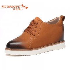 红蜻蜓 女鞋新款内增高高帮皮鞋女休闲圆头学院女单鞋