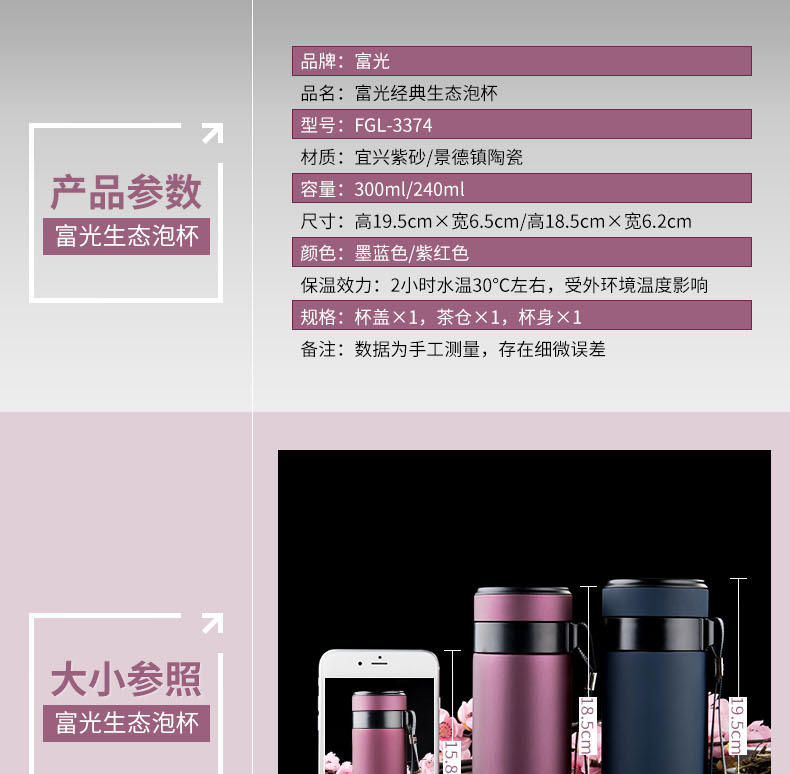 商品名称:富光 紫砂杯 便携过滤网宜兴紫砂生态养生茶杯 男女士泡茶水杯子 FGL-3366