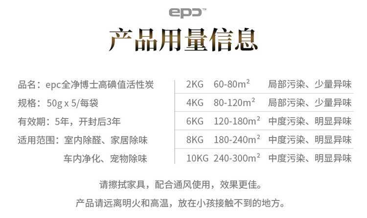 商品名称:EPC 活性炭除甲醛去异味 活性炭包 新房甲醛 吸甲醛除味装修家用