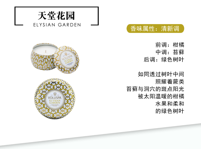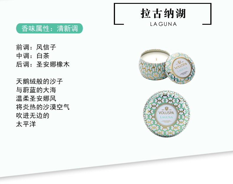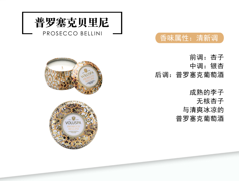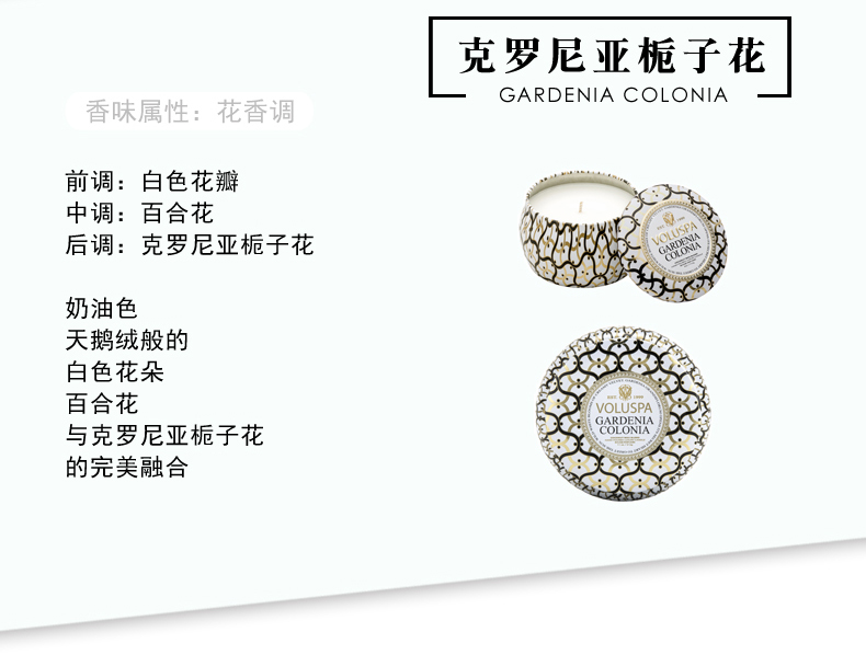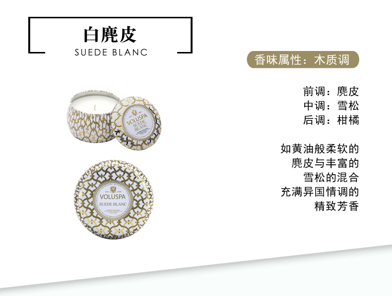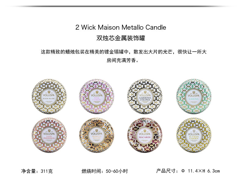 商品名称:VOLUSPA Blanc白色家居系列-金属 双烛芯装饰罐 香薰蜡烛