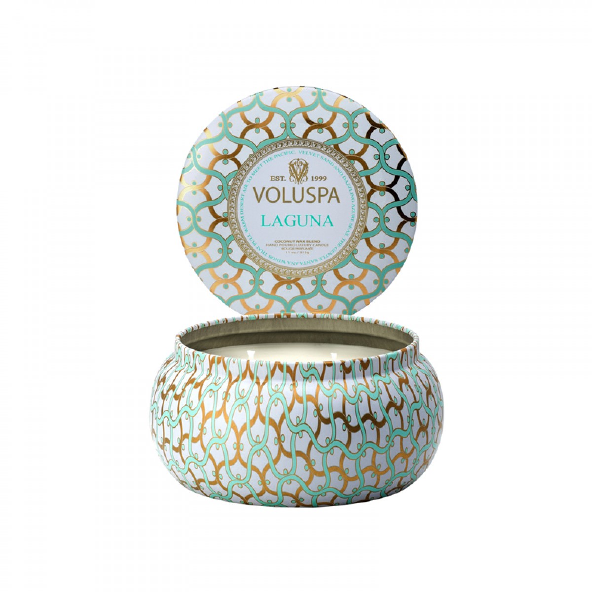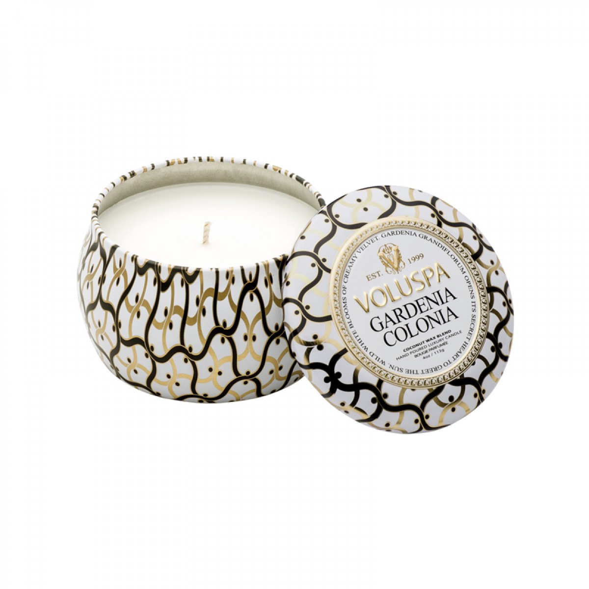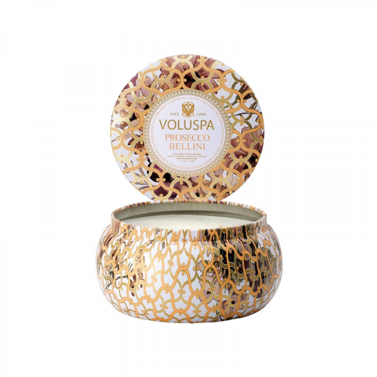 商品名称:VOLUSPA Blanc白色家居系列-金属 双烛芯装饰罐 香薰蜡烛