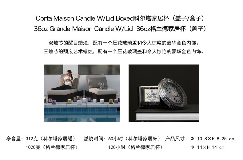 商品名称:VOLUSPA Vermeil镀金银系列 科尔塔、格兰德家居杯 香薰蜡烛