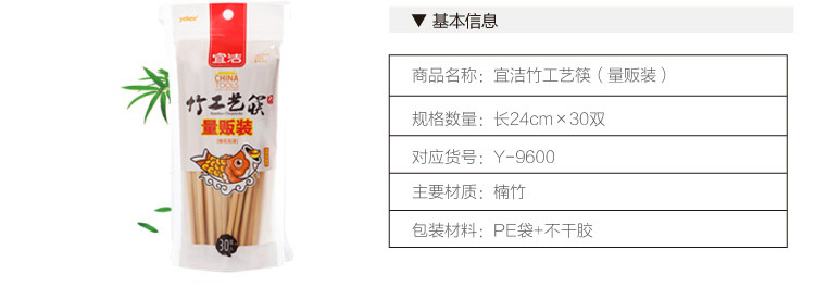 商品名称:宜洁 竹筷子雕刻鱼纹筷家用30双套装家庭装筷子防滑卫生竹筷Y-9600