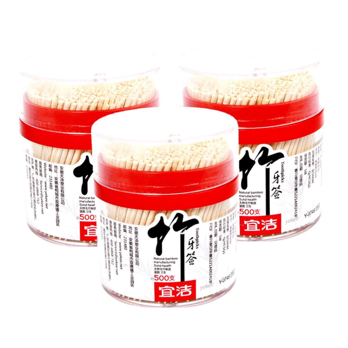 宜洁 1500只牙签一次性单头细环保竹牙签餐厅酒店家用3筒装 Y-9746