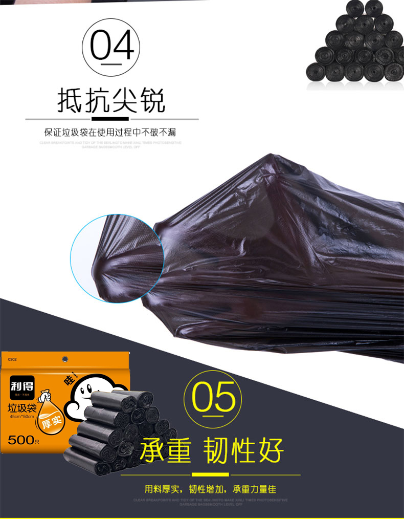 商品名称:利得 垃圾袋 中号实惠装45*50cm*500只黑色量贩装