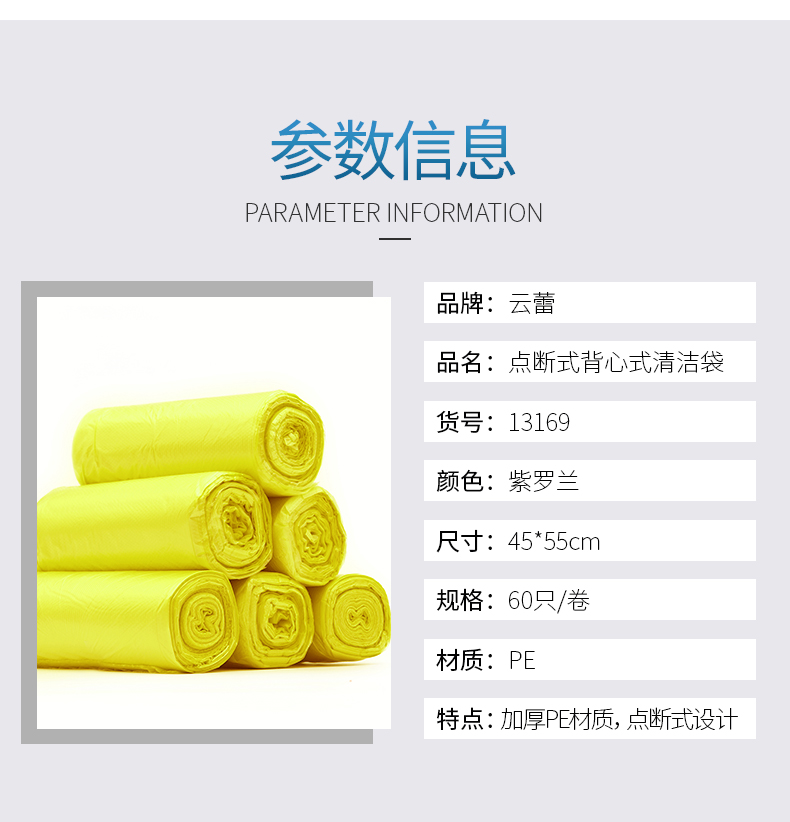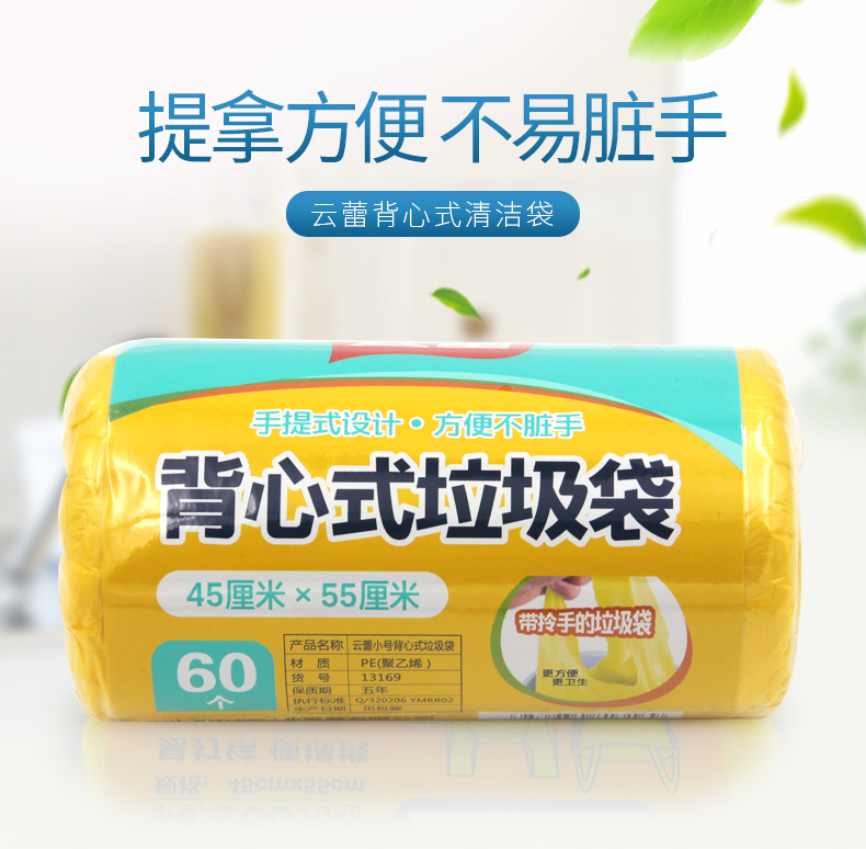 商品名称:云蕾 背心式垃圾袋45cm*55cm*60只 加厚清洁袋1卷便携卧室厨房 13169