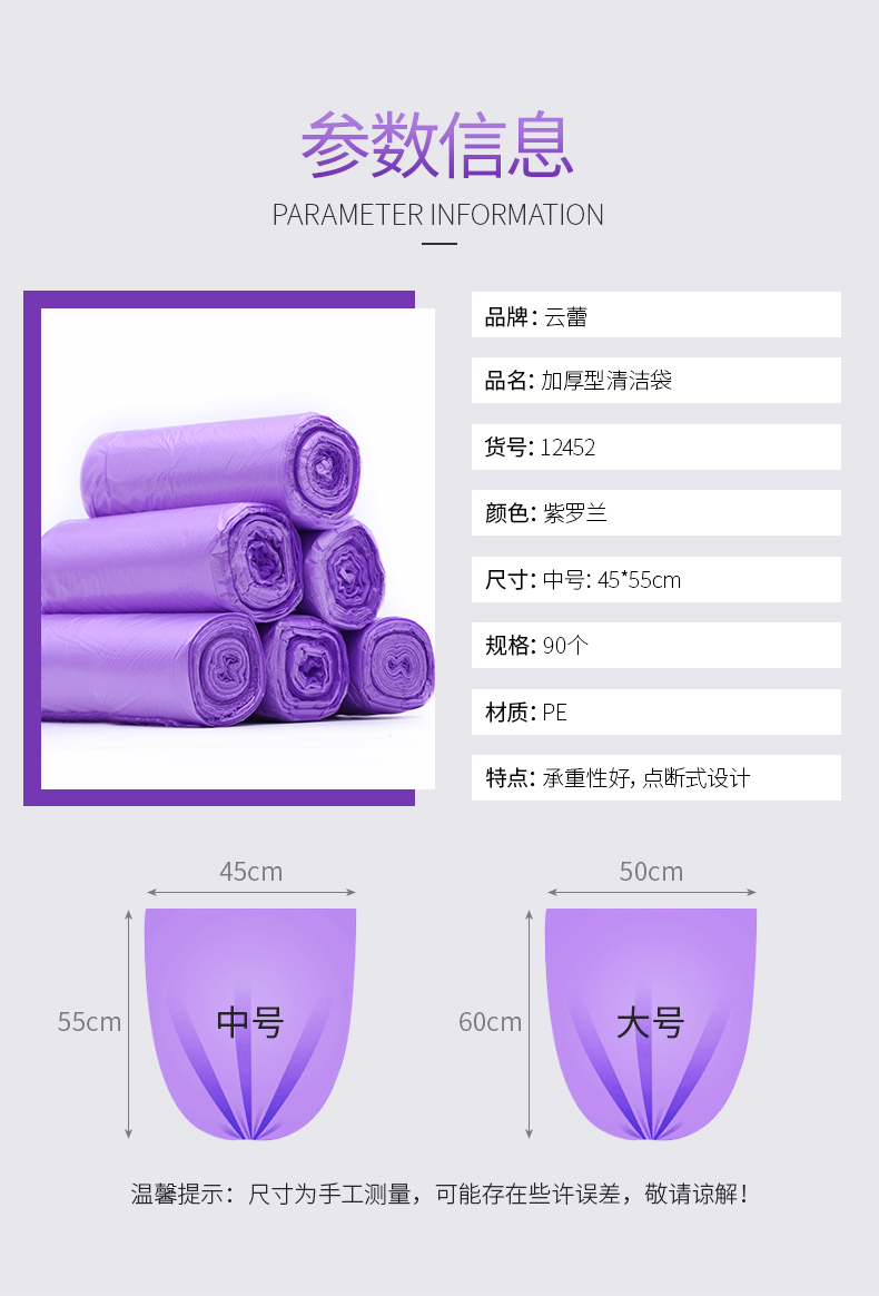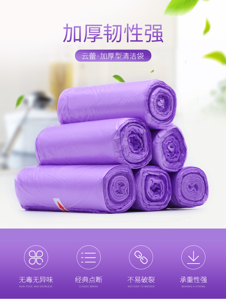 商品名称:云蕾 加厚型垃圾袋中号90只 45*55cm家用清洁袋点断式垃圾袋塑料袋 12452