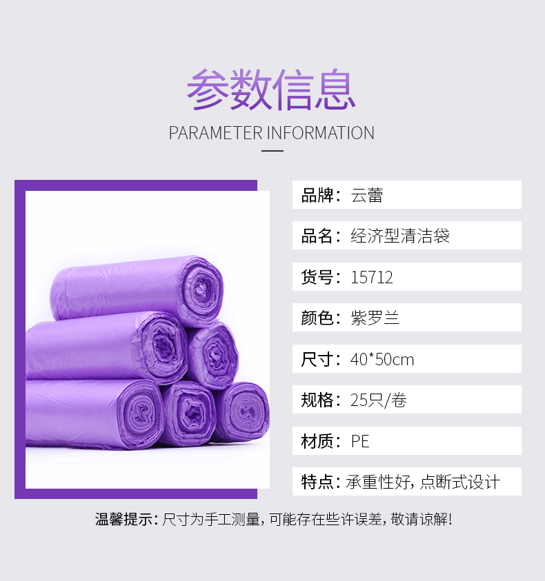 商品名称:云蕾 经济型垃圾袋150只一次性点断式清洁袋厨房客厅家用塑料袋 15712