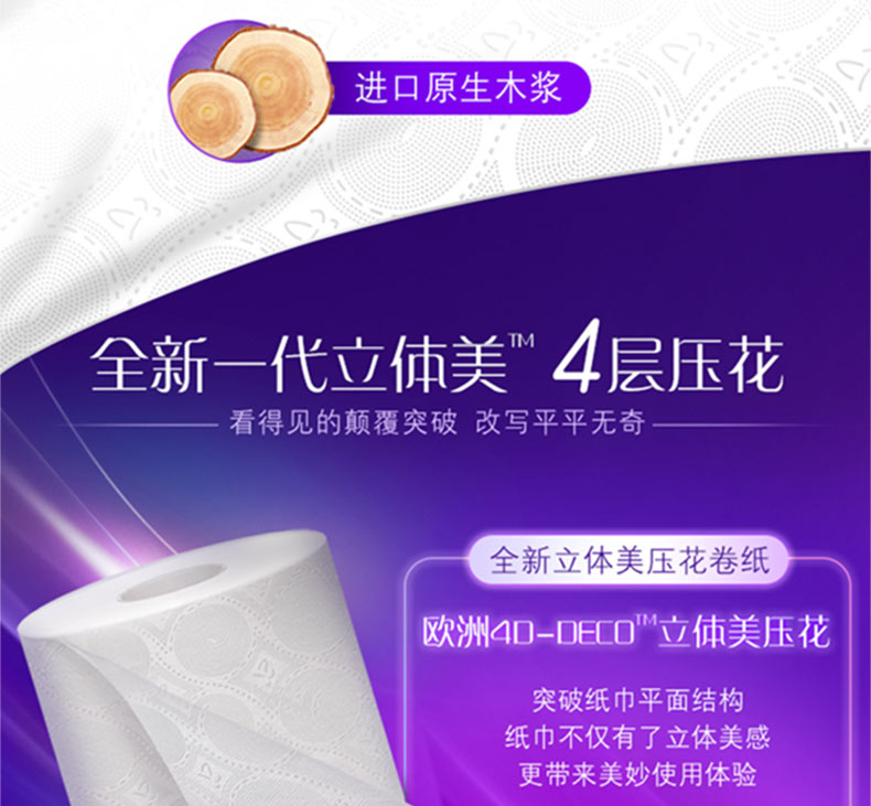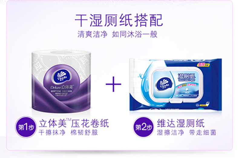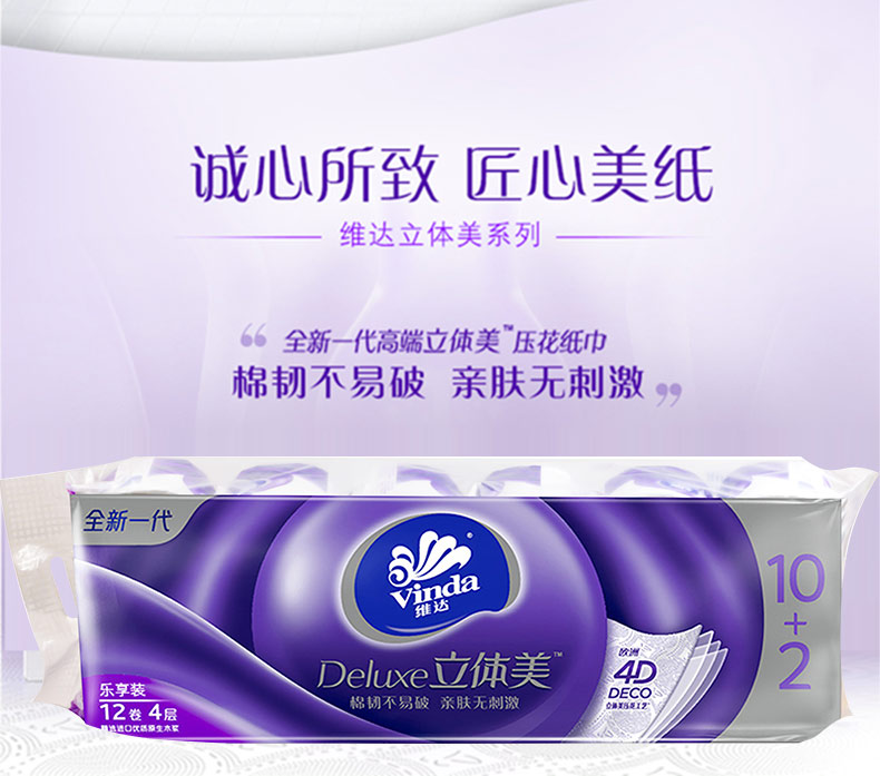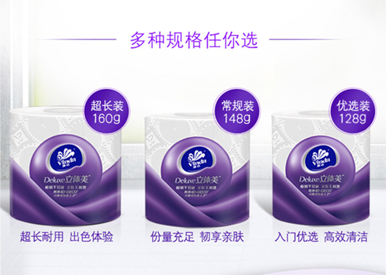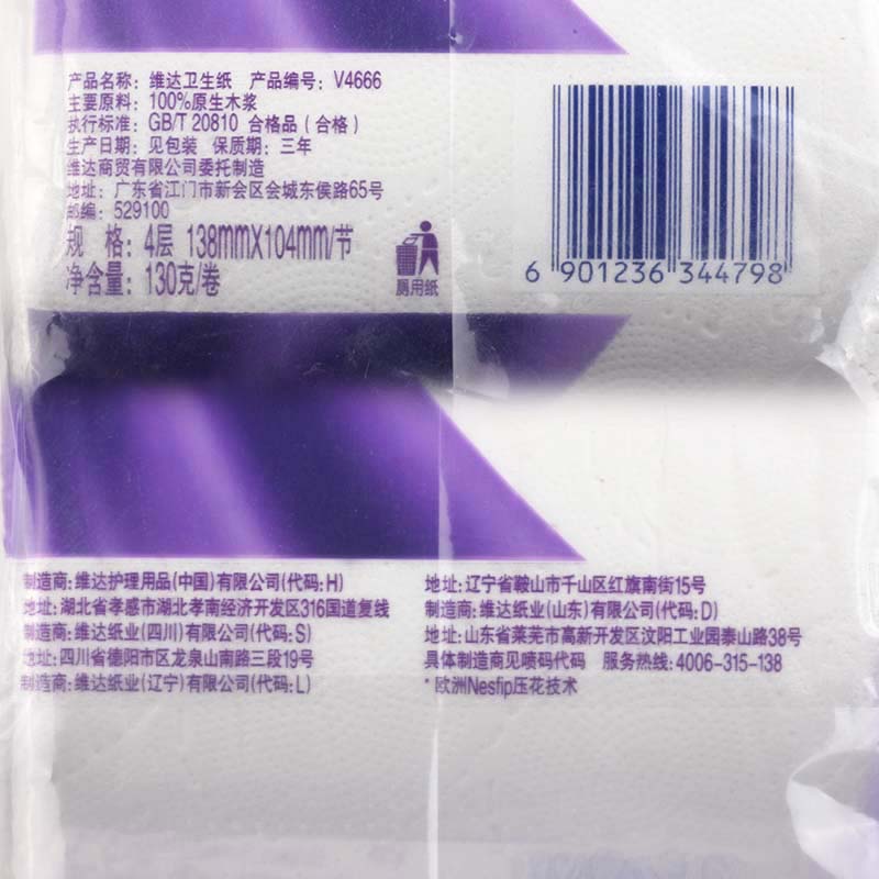 商品名称:维达 立体美130克4层卫生纸卷筒纸自然无香2提24卷v4666