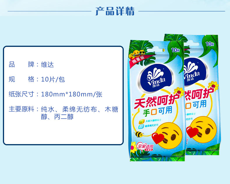 商品名称:维达 湿纸巾无香儿童手口独立包装vw1018-10包100片