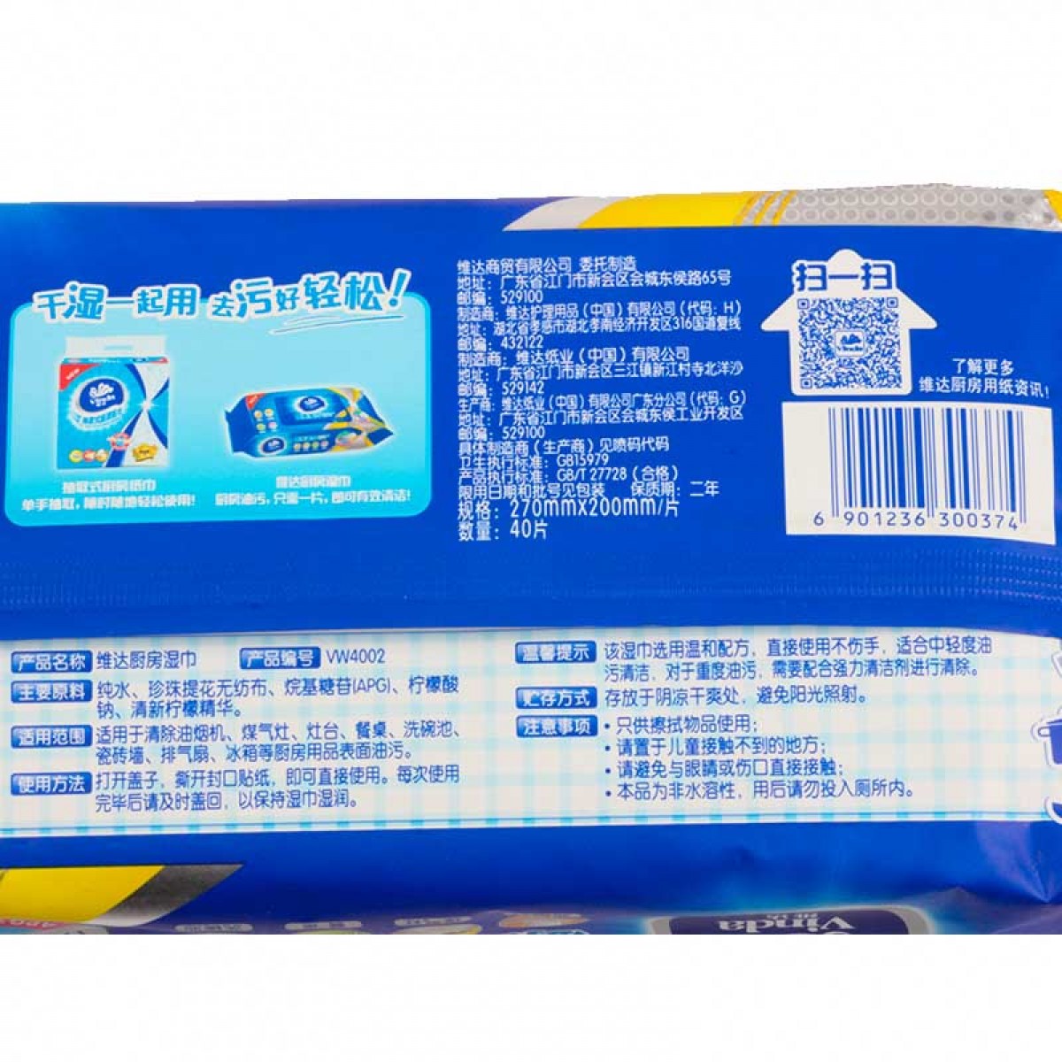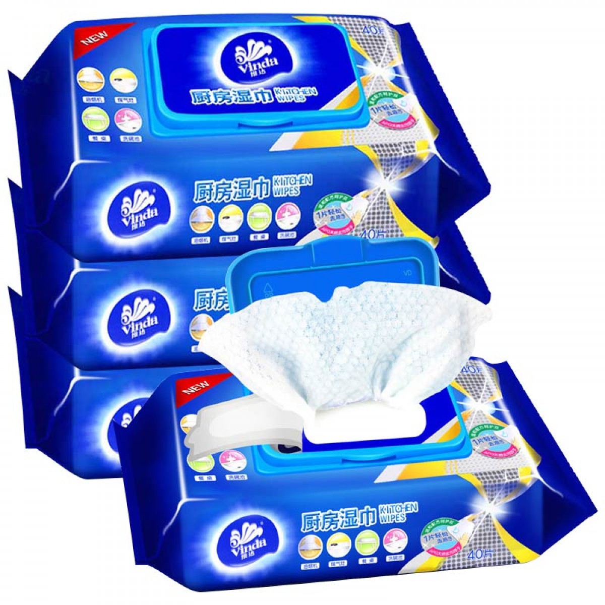 商品名称:维达 厨房湿巾纸巾40片x3包组合去油污(共120片)VW4002