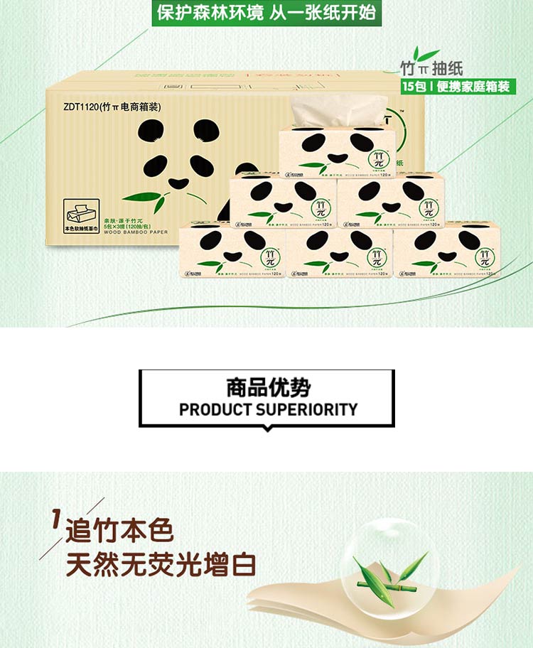 商品名称:心相印 竹π本色纸纸抽3层120抽/包抽纸整箱15包装卫生纸巾